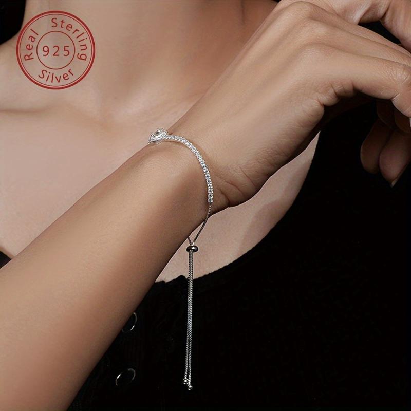 This stunning 925 sterling silver bracelet features a minimalist design that adds a touch of elegance to any outfit. The adjustable slider allows for a perfect fit, making it ideal for daily wear or special occasions.