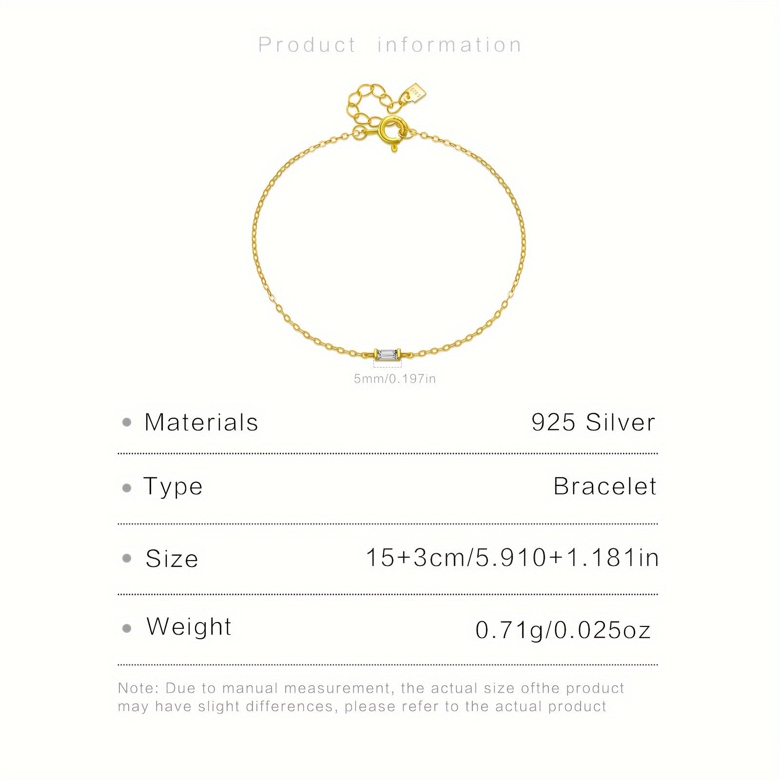 A stylish and versatile bracelet made of 925 sterling silver with synthetic cubic zirconia, featuring an 18K golden plated lightweight charm. Ideal for music festivals and suitable for all seasons.