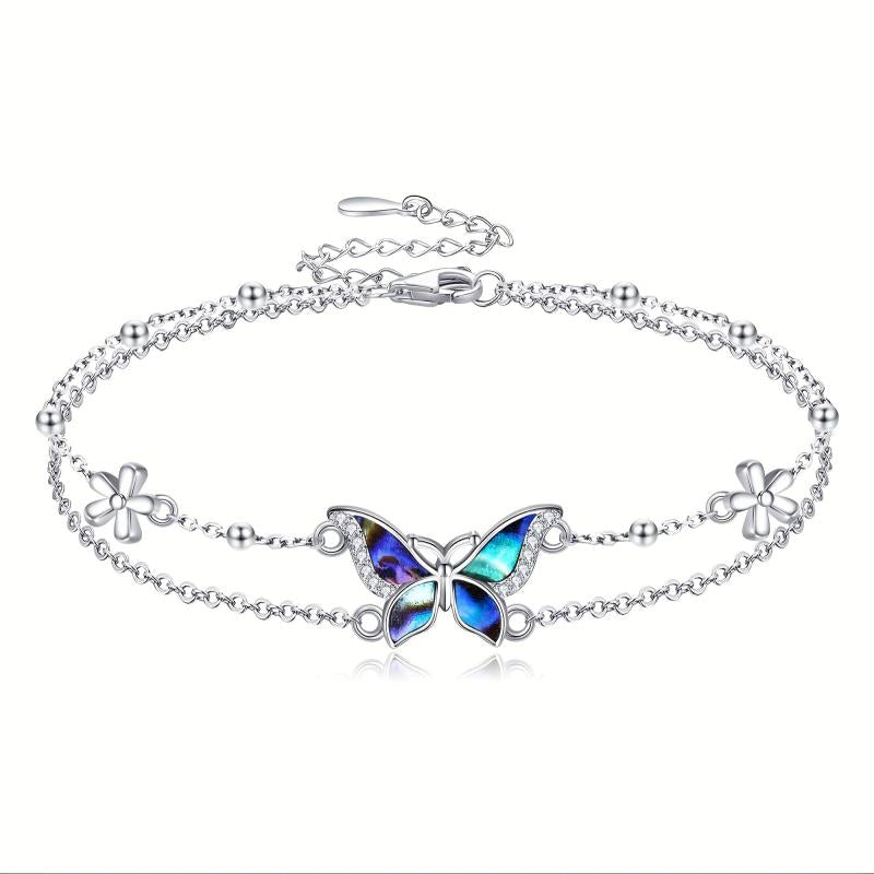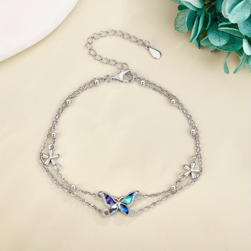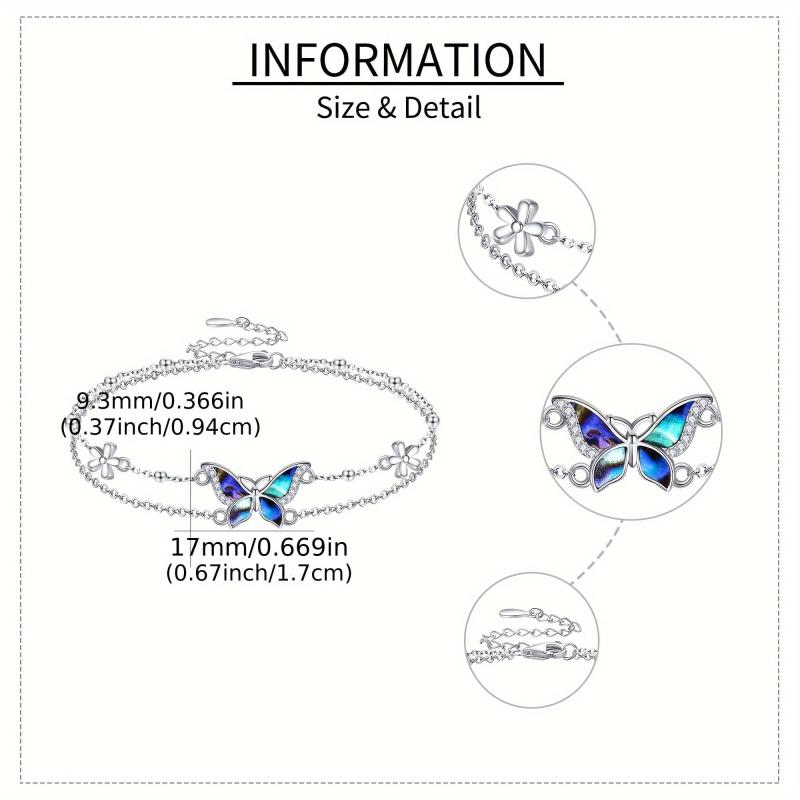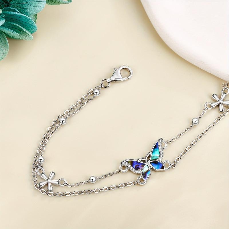 This stunning butterfly bracelet is made of 925 sterling silver, featuring a double layer design. It makes a perfect gift for women who love delicate and elegant jewelry.
