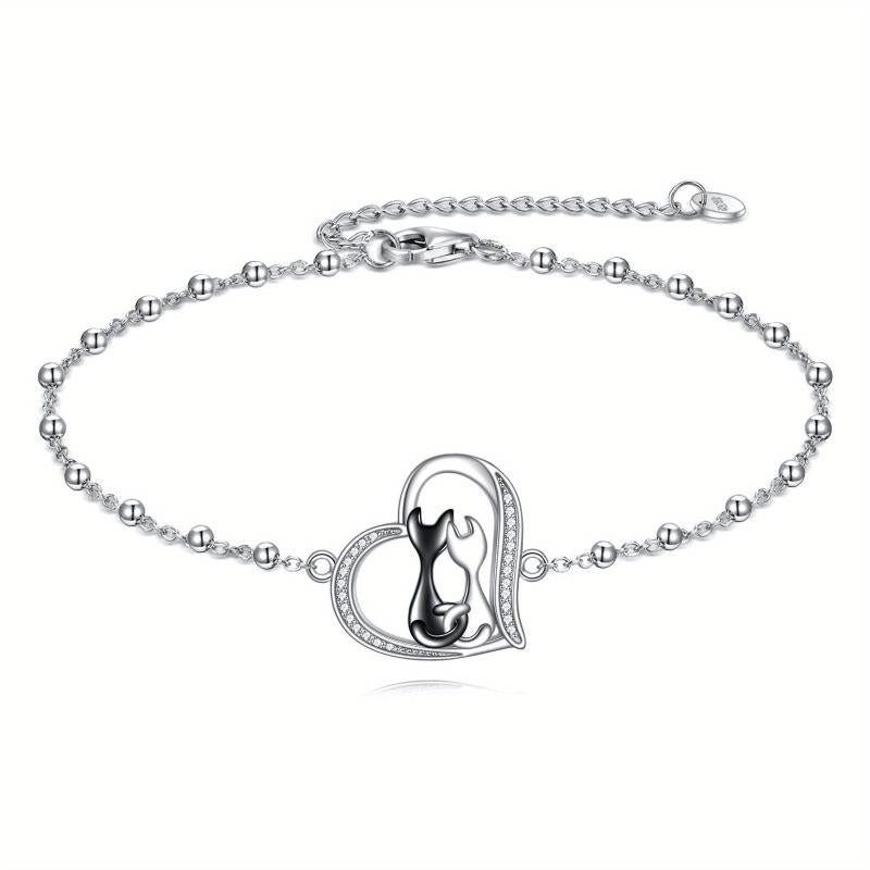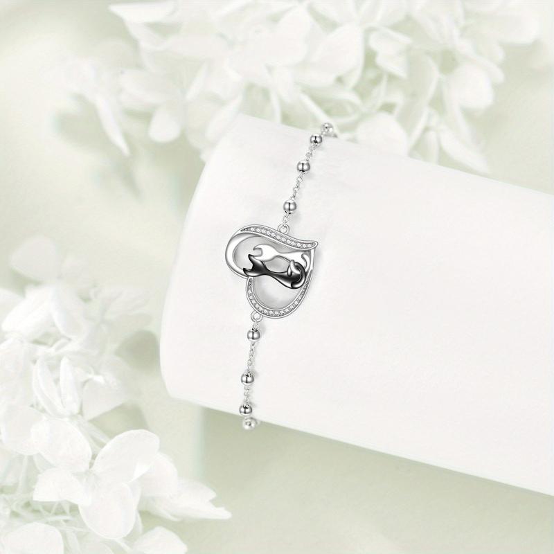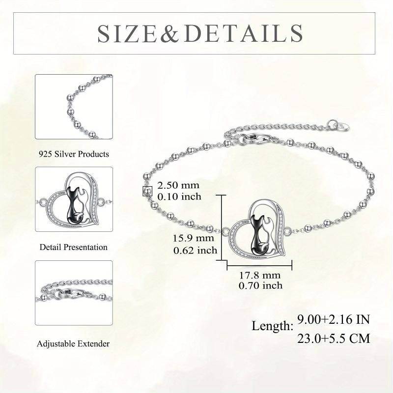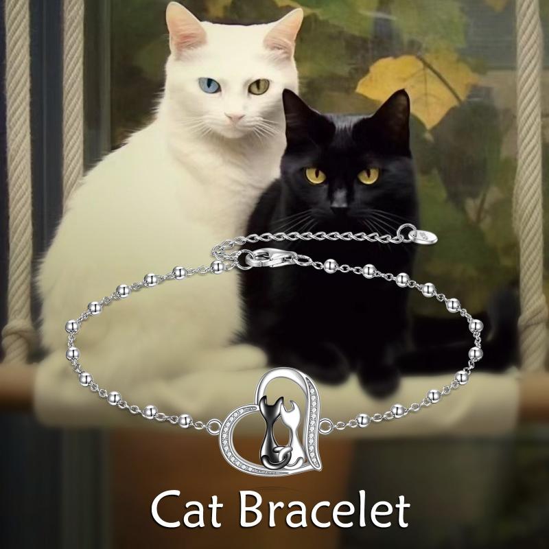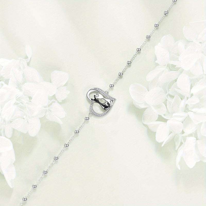 This charming cat bracelet is made of 925 sterling silver, perfect for cat lovers. It's a stylish accessory that showcases your love for feline companions.