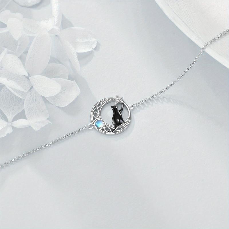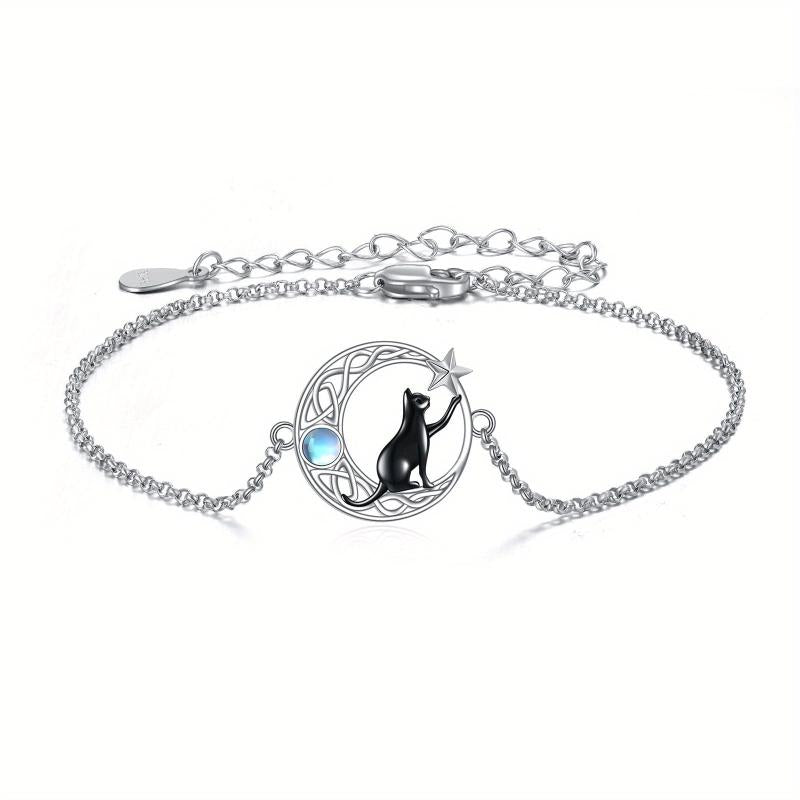 This cat bracelet features a Celtic knot design with moon charm and moonstone, making it the perfect gift for women, girls, wife, or daughter on birthdays.