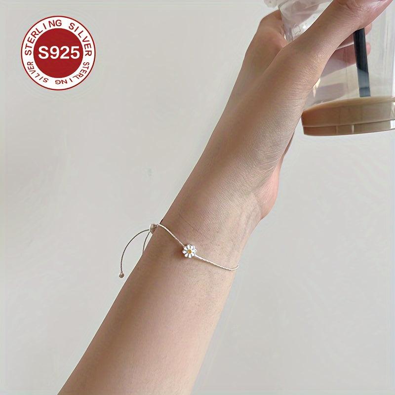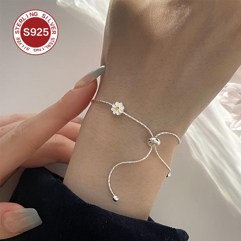 This daisy flower bracelet made of 925 sterling silver is perfect for daily wear & parties. It features golden plating and is hypoallergenic, making it an ideal gift for women.
