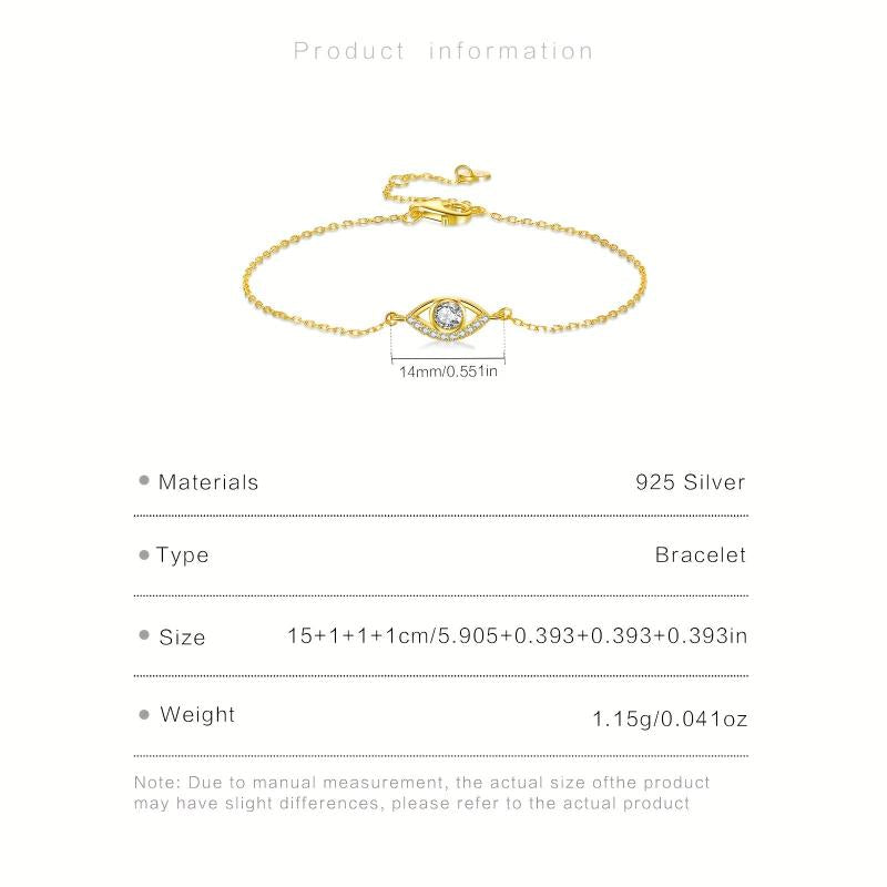 Add a touch of elegance to your look with this stunning 925 sterling silver bracelet featuring a hollow out eye charm set with clear synthetic zirconia. The classic style and high-quality materials make it a perfect accessory for any occasion.