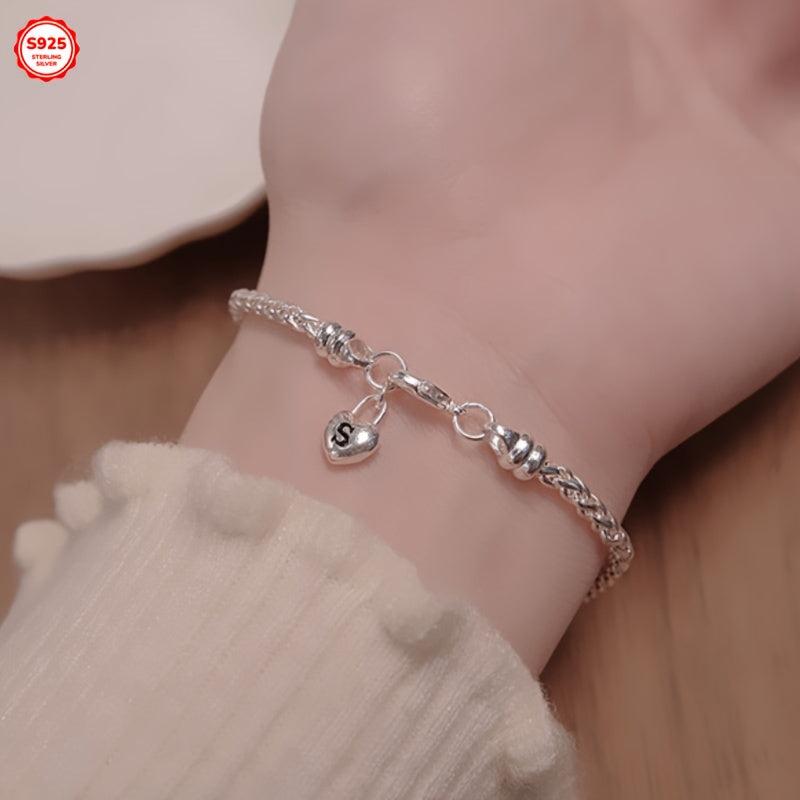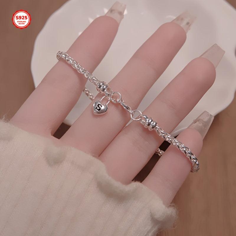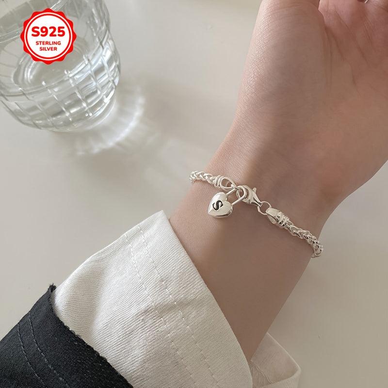 This boho style bracelet is made of 925 sterling silver, featuring an S lock heart design. It is perfect for daily wear or as a special gift.