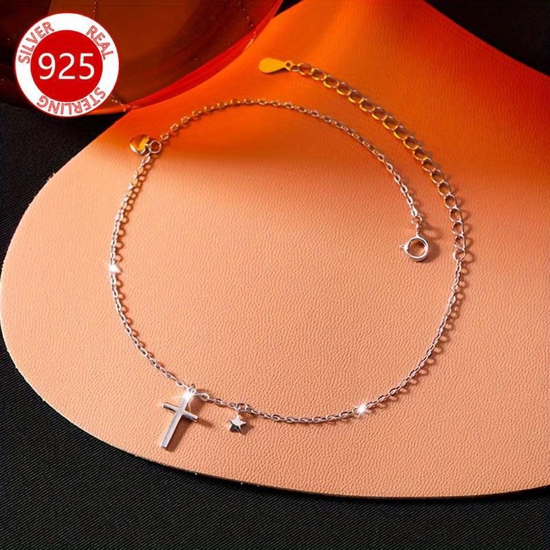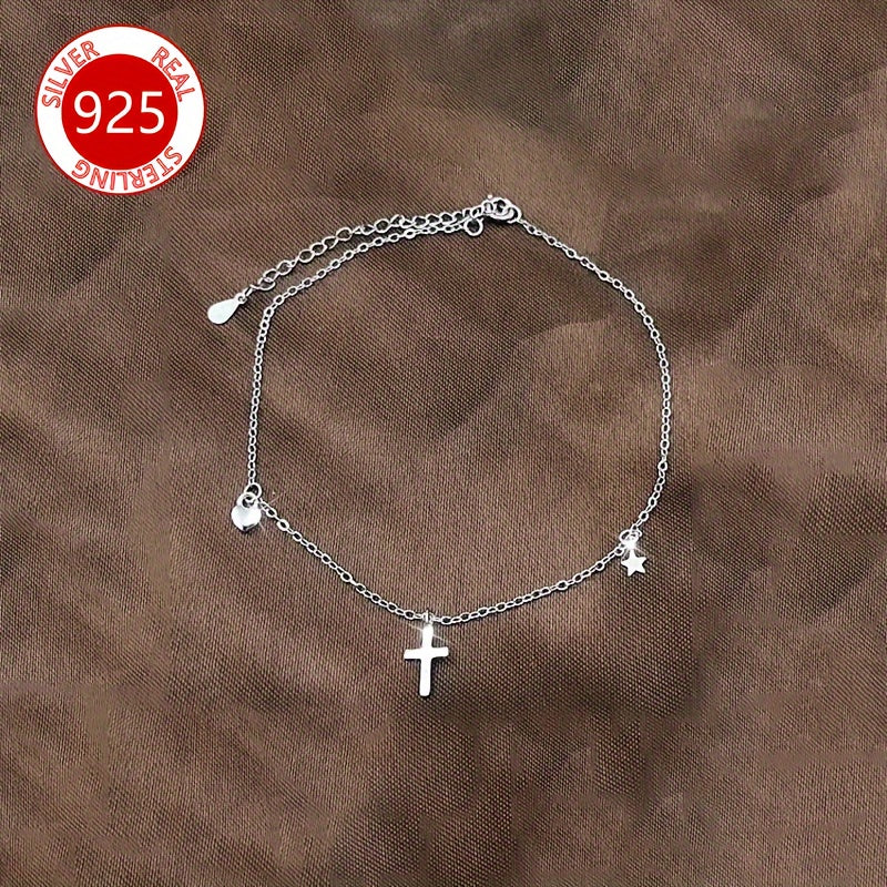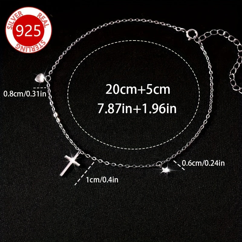 Add a touch of vintage charm with this delicate anklet featuring a heart and cross pendant. Made of 925 sterling silver, this anklet is lightweight and ideal for special occasions. Makes a perfect gift for women.
