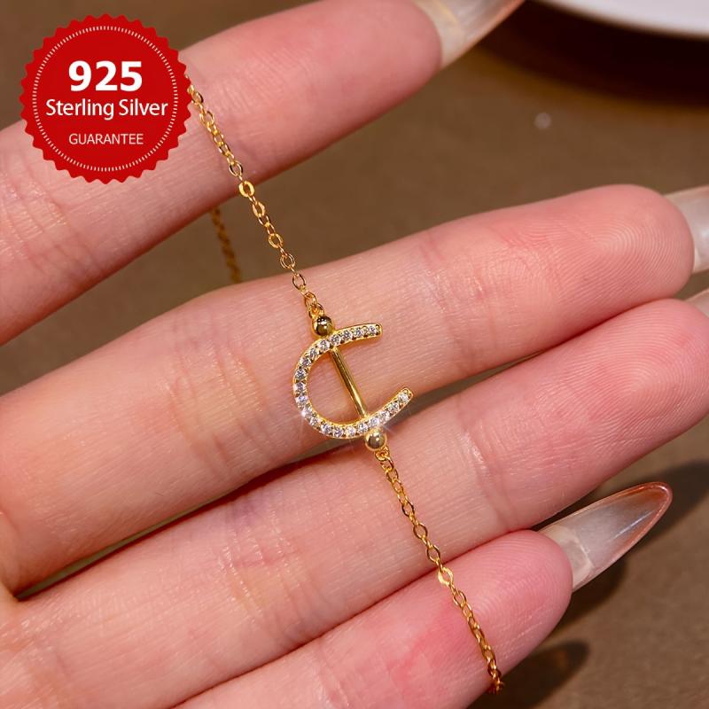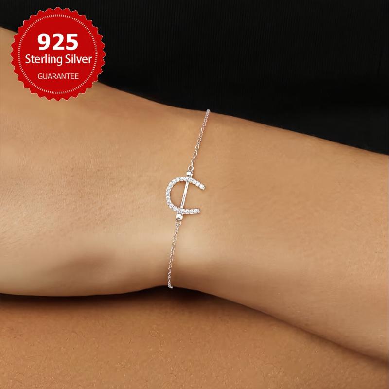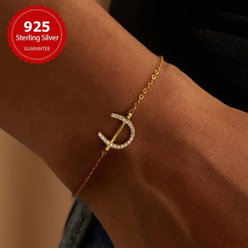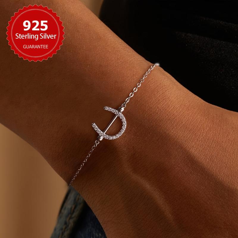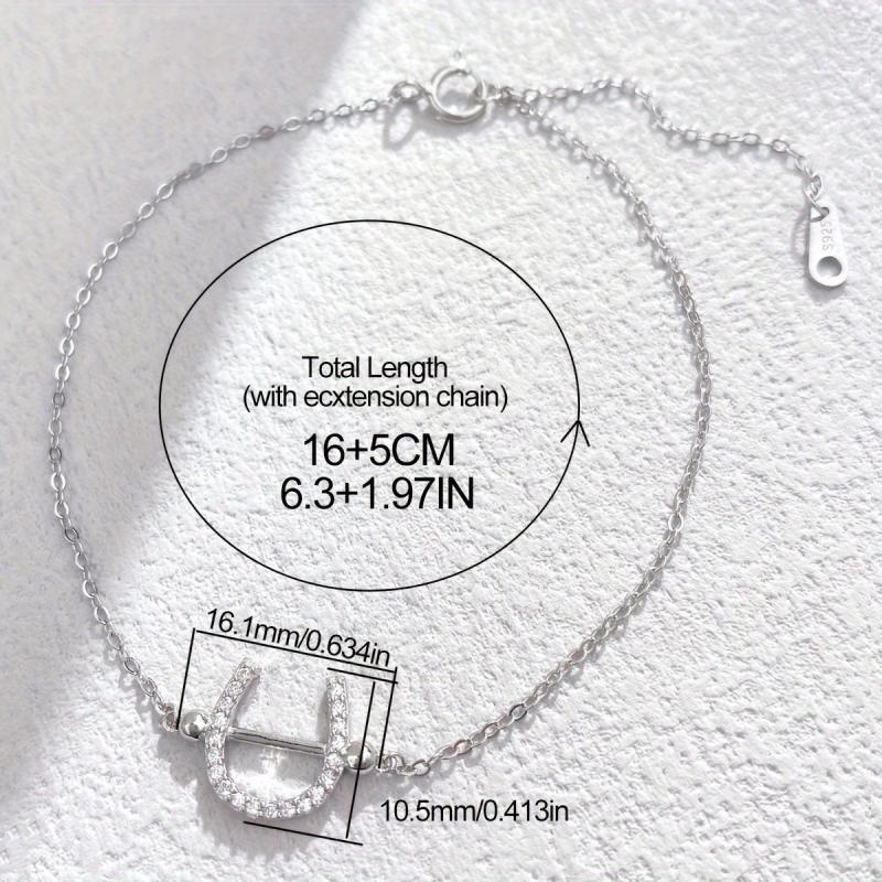 Add a touch of elegance to your look with this stunning 925 sterling silver horseshoe bracelet featuring synthetic cubic zirconia. Perfect for everyday wear or special occasions.
