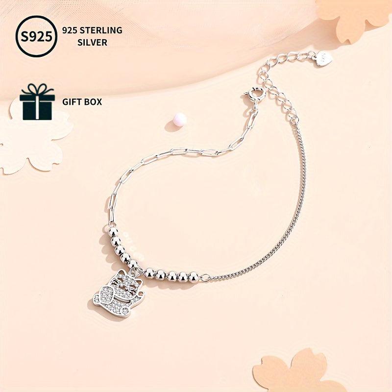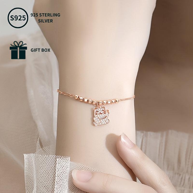 This beautiful 925 Sterling Silver Lucky Cat Bracelet is a perfect gift for friends, girlfriends, and mothers. It is suitable for daily wear, parties, and banquets.