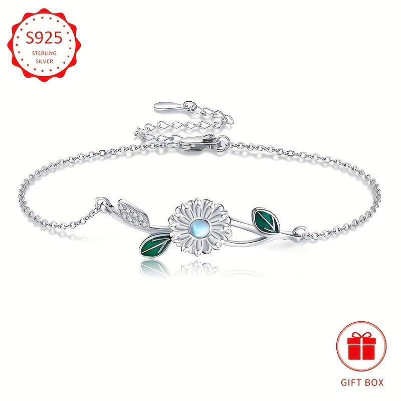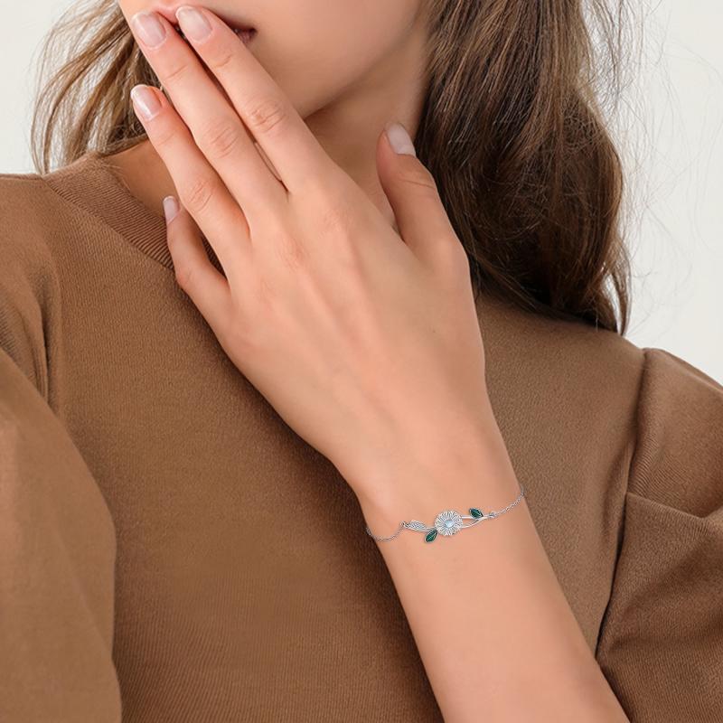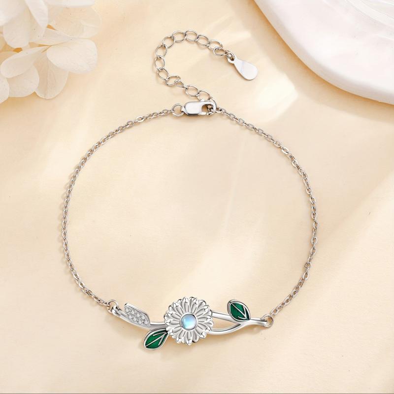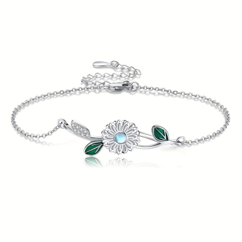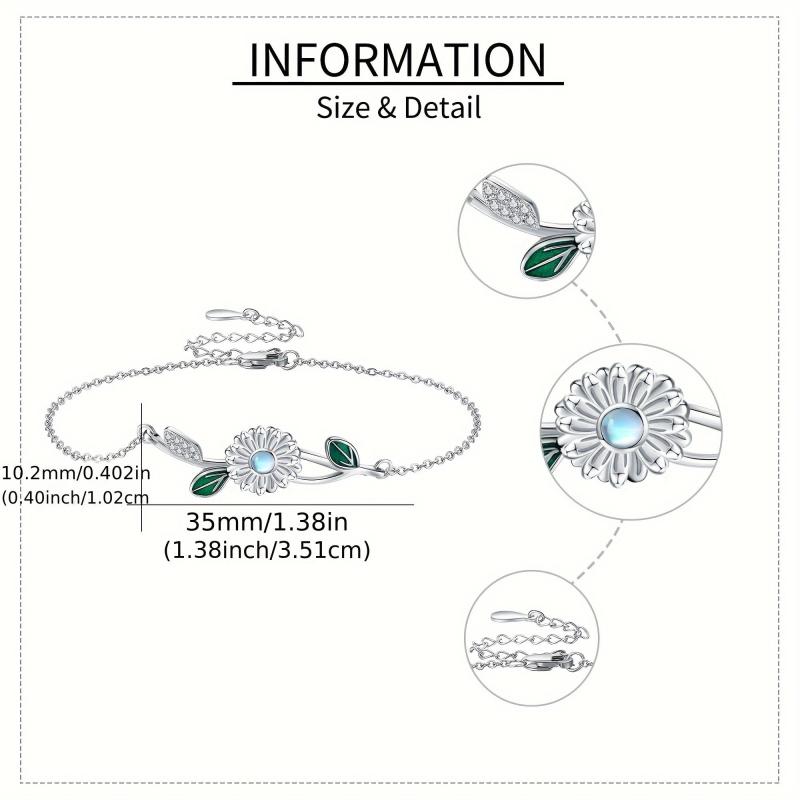 This dainty bracelet features a beautiful moonstone daisy design crafted in 925 sterling silver. It makes a perfect gift for women who appreciate delicate and elegant jewelry.