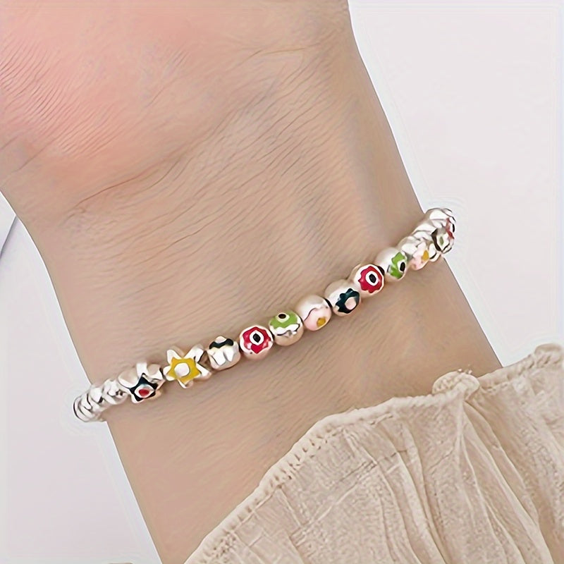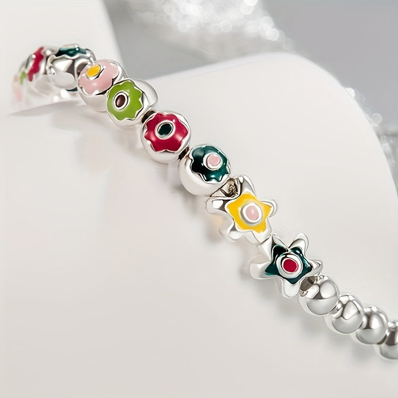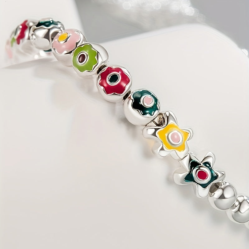 Add a touch of sparkle to your casual attire with this vintage boho style rainbow bracelet. Made from 925 sterling silver, it features sparkling sequins for a chic look. Perfect for daily wear or gifting to a loved one.