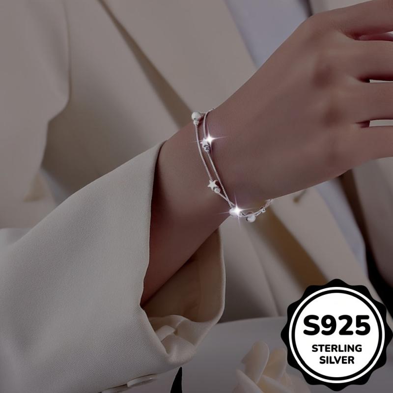 This minimalist double layer star bracelet is made of high-quality 925 sterling silver. Perfect for everyday wear and a great gift for Valentine's Day.