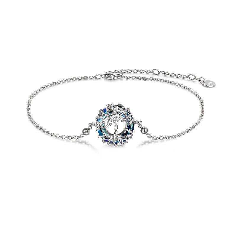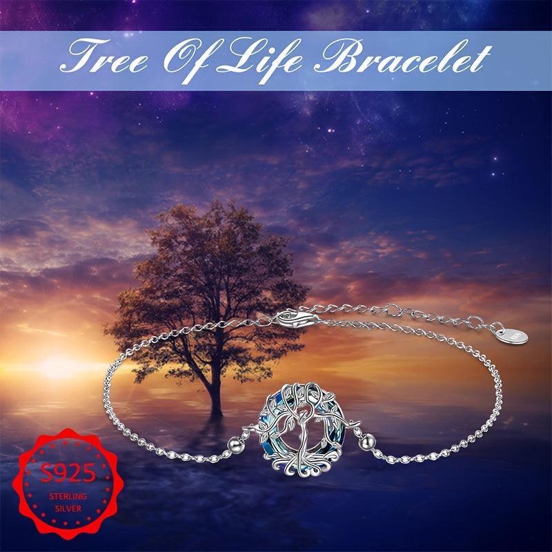This stunning bracelet features a Tree of Life design crafted from 925 sterling silver and adorned with artificial crystal. A perfect jewelry gift for women and girls.