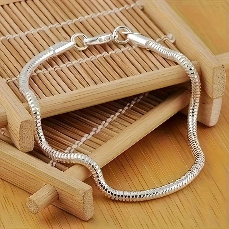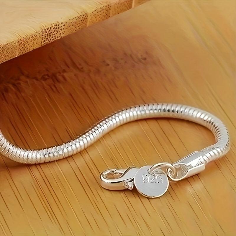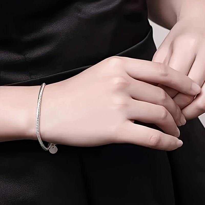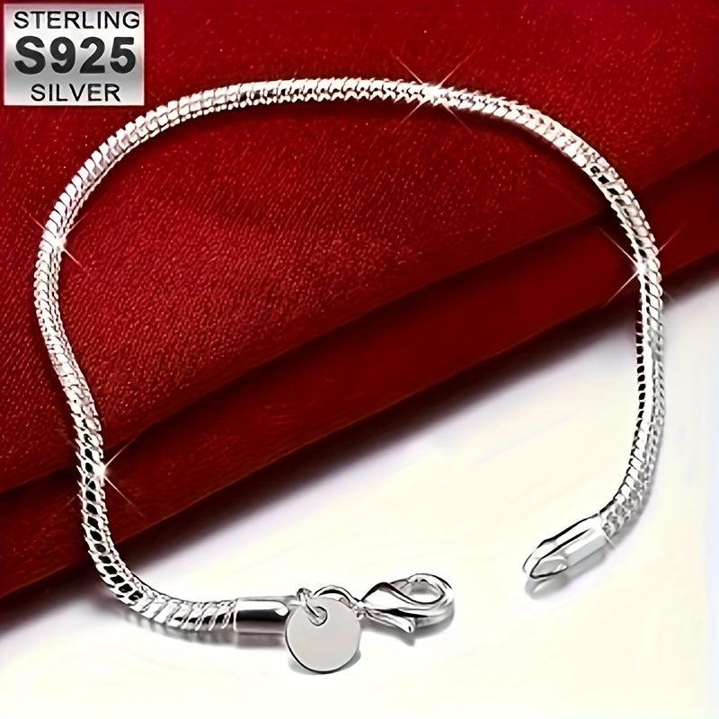 Enhance your style with this elegant 925 sterling silvery bracelet. Perfect gift for women, it complements clothing, shoes, and accessories.