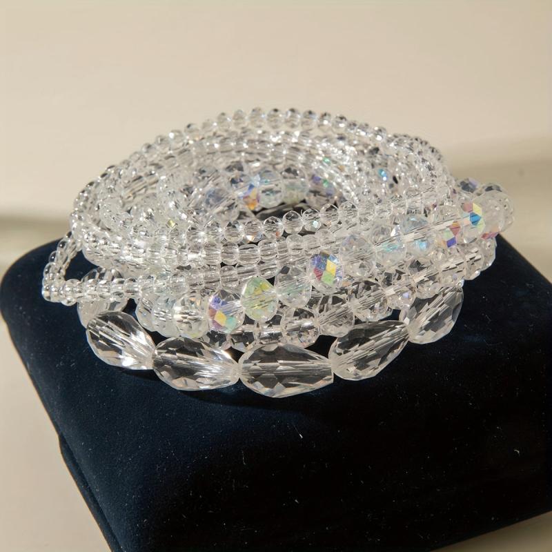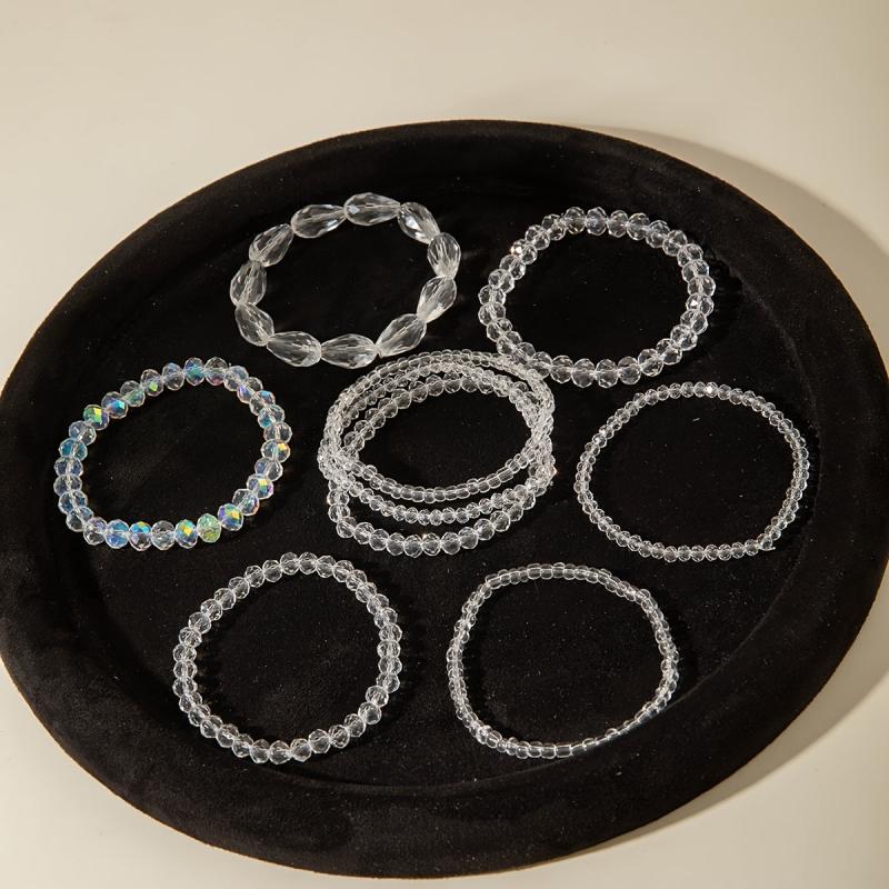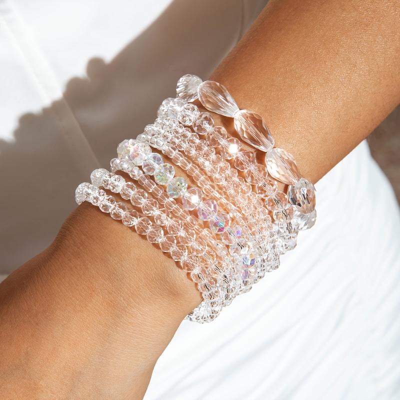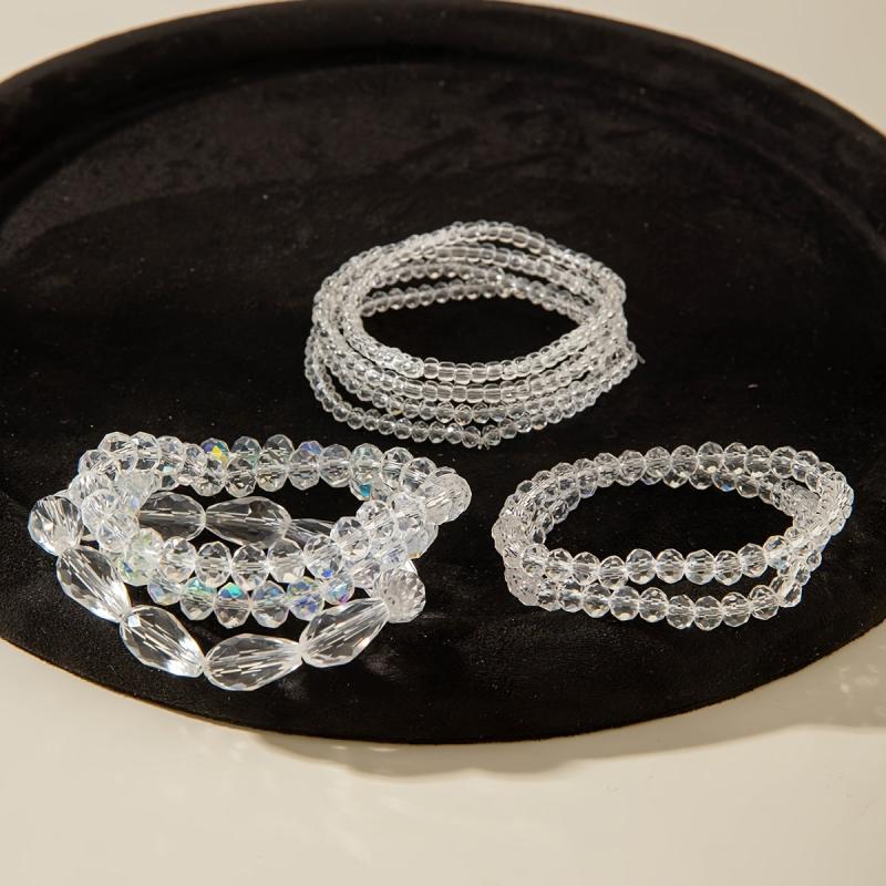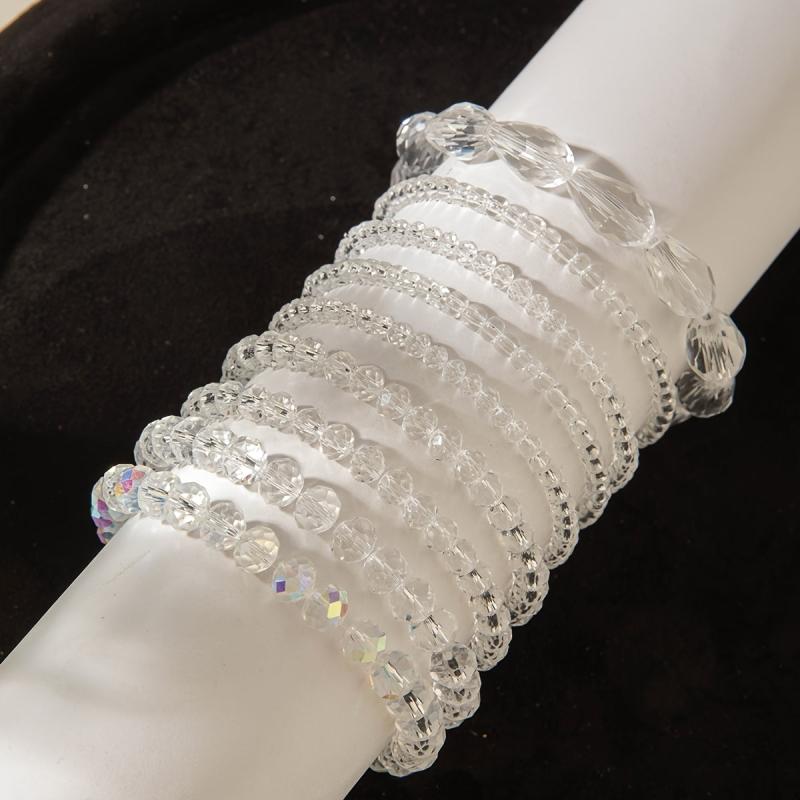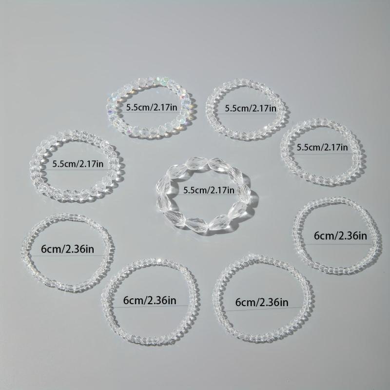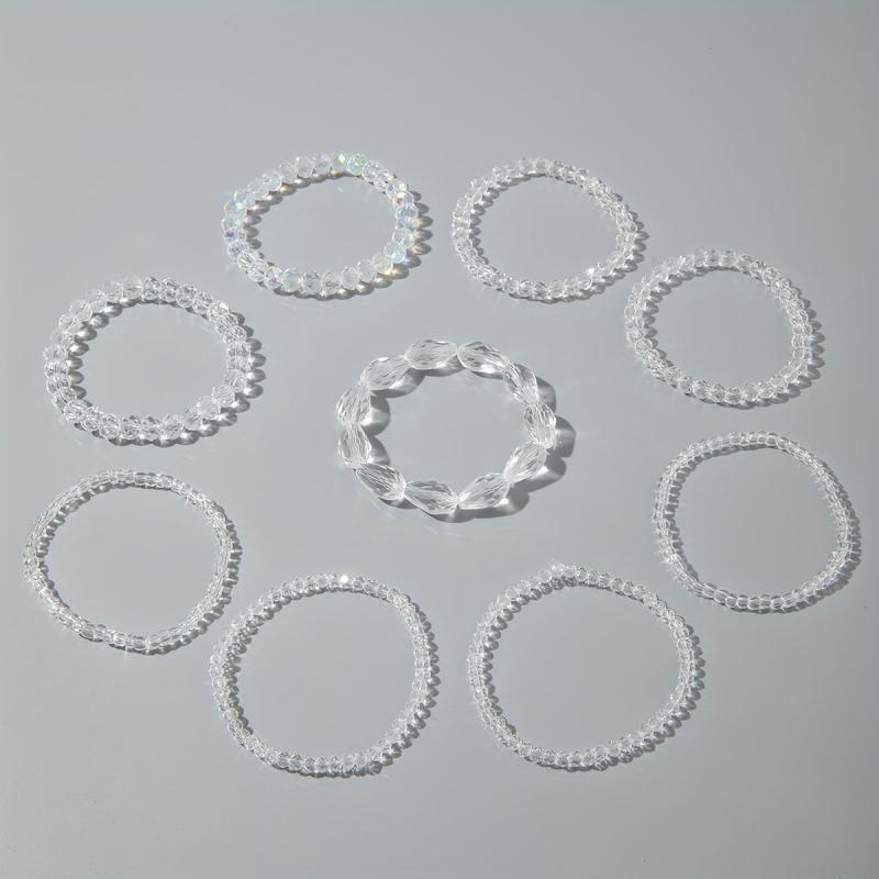 Make a fashion statement with this 9pcs transparent rice bead bracelet set. The clear flat drop glass bracelets are perfect for wearing on vacations or to parties. They make a great holiday gift for friends and women's ver.