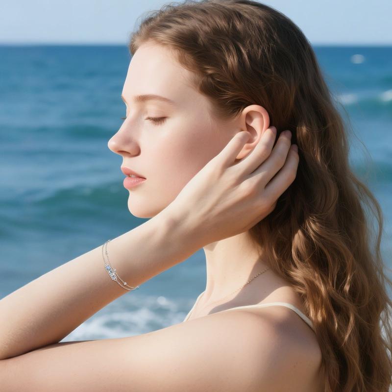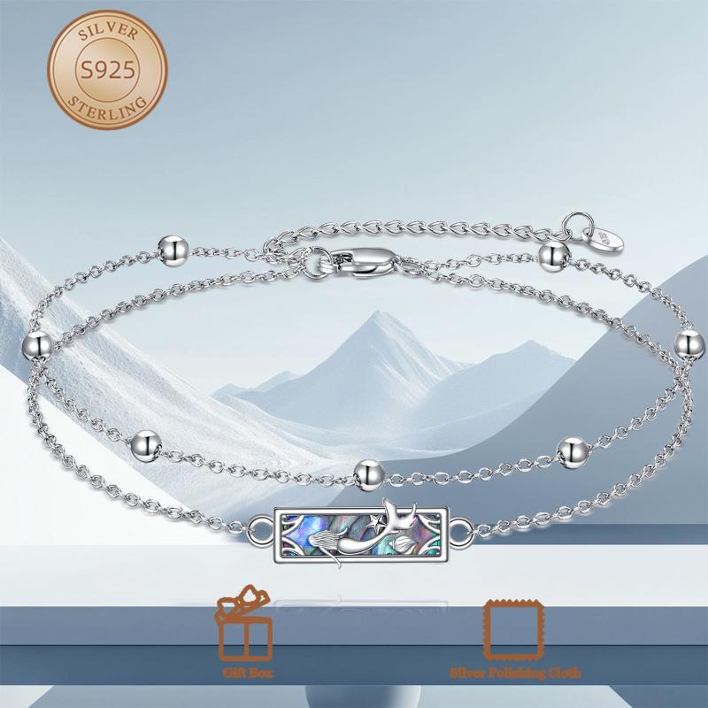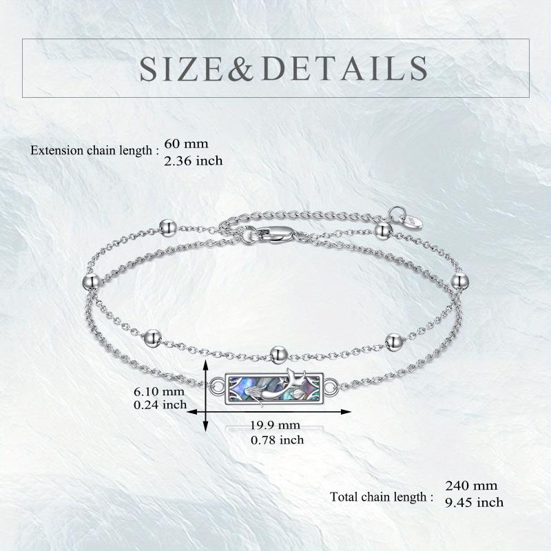 Elegant S925 sterling silver bracelet featuring a stunning abalone shell mermaid charm on a double layer beaded chain. Perfect as a gift for women or sisters.