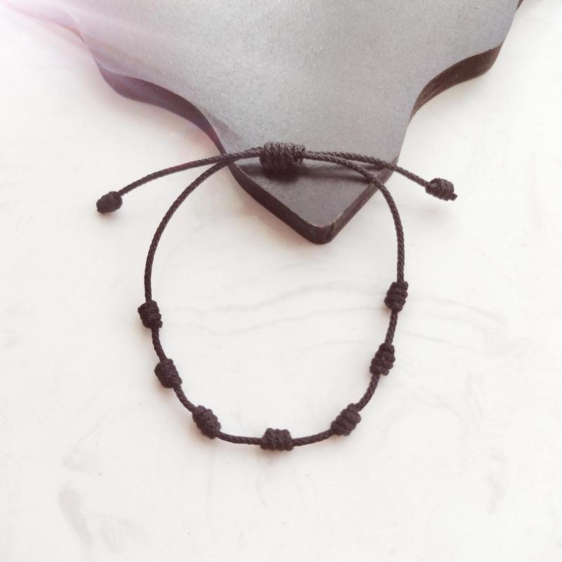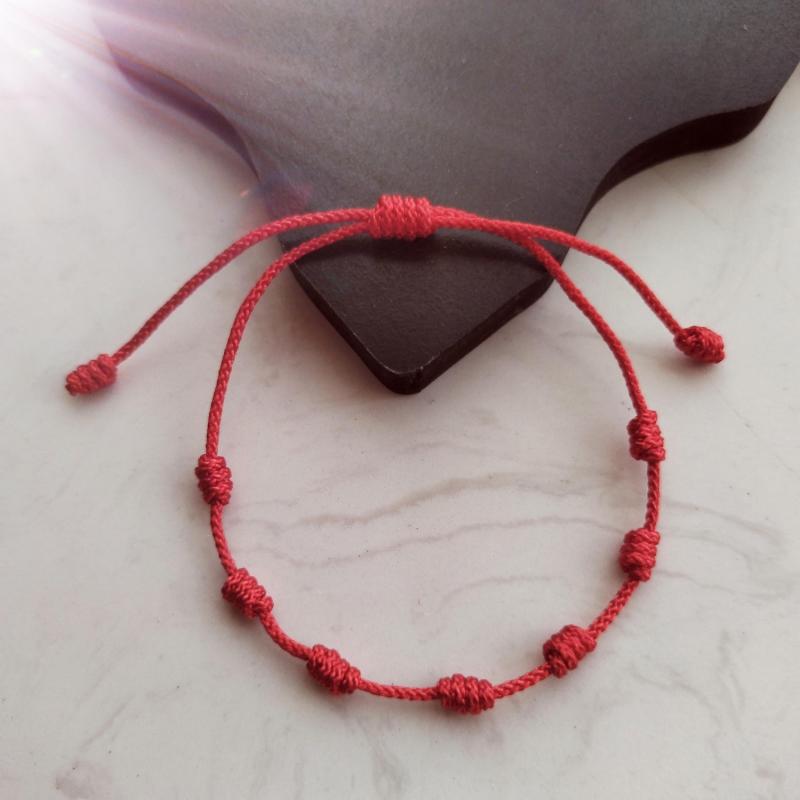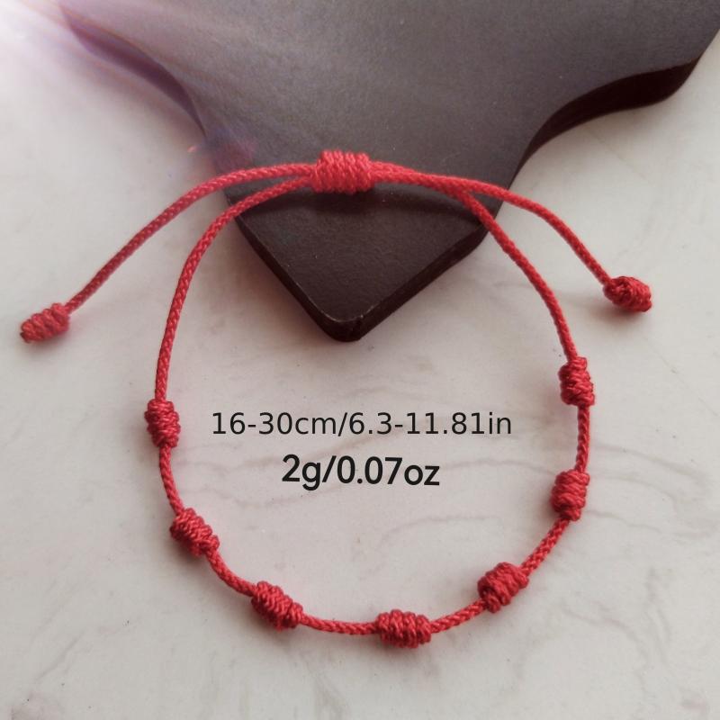 This adjustable 7 braid lucky knot bracelet features a colorful red and green woven cord design, perfect for couples matching bracelets.