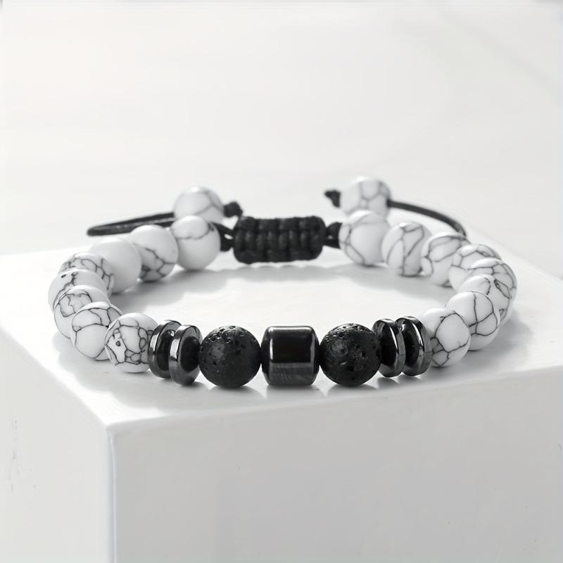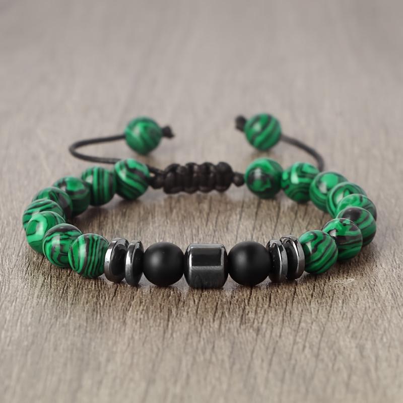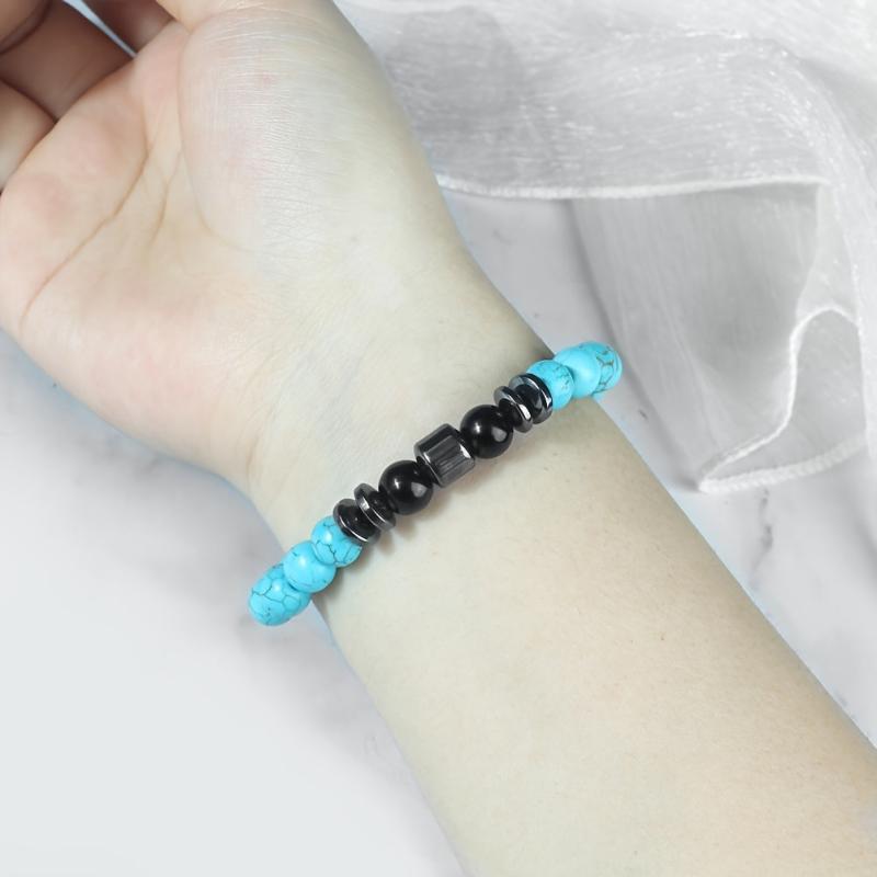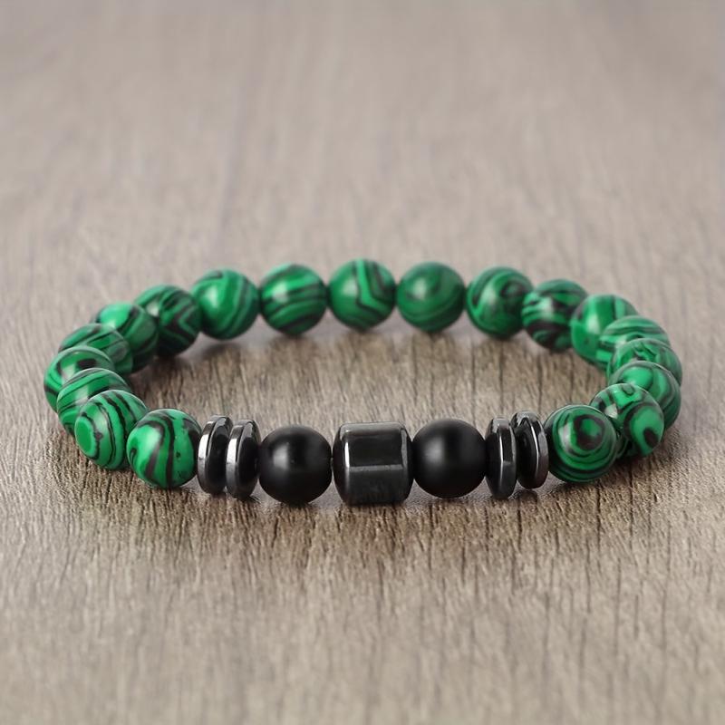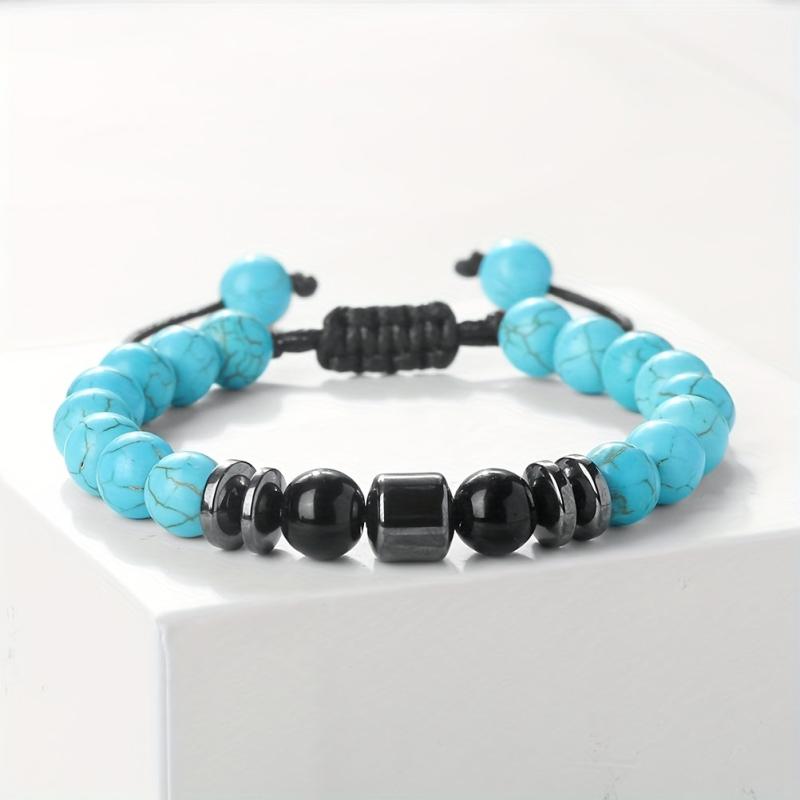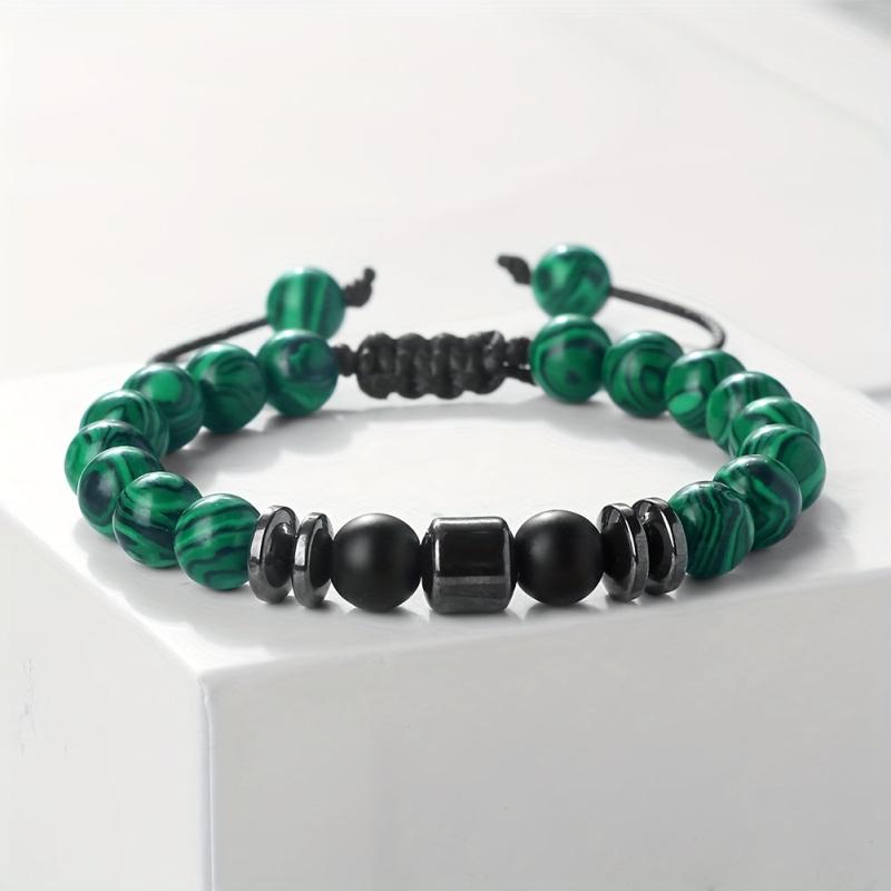 This boho vintage style bracelet features a mix of polished and beaded stones, with a stunning peacock stone centerpiece. Perfect for both daily wear and vacation occasions.
