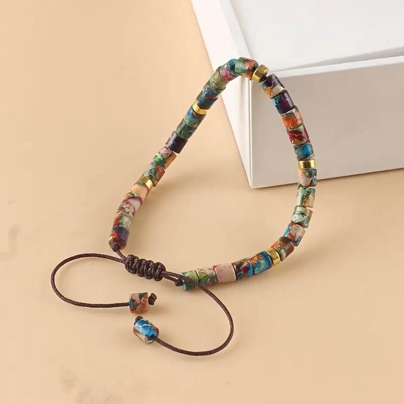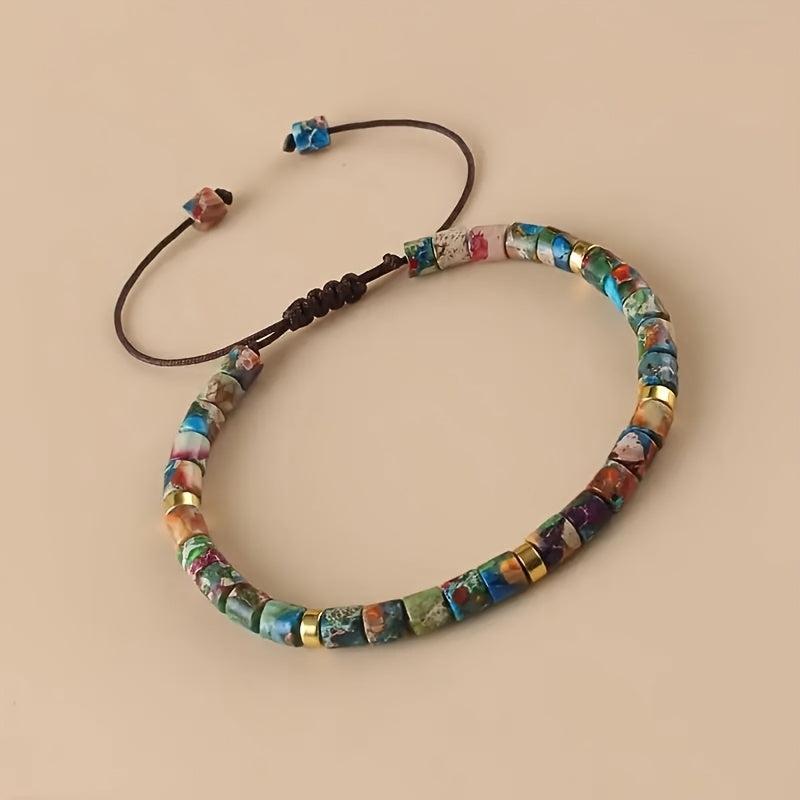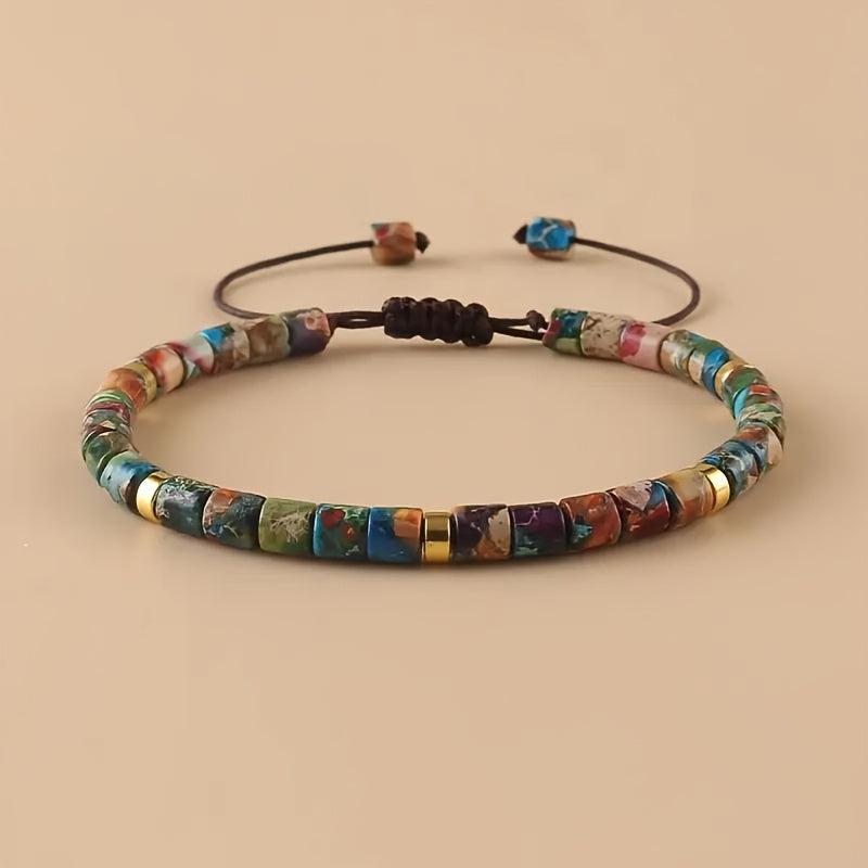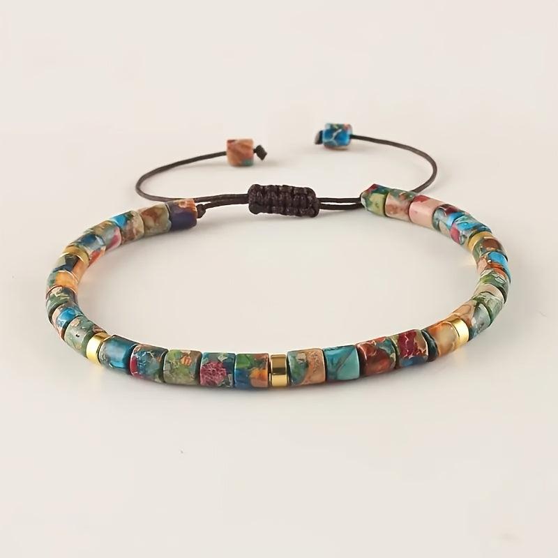 This colorful multicolor gemstone bracelet is perfect for men and women. It features 4x4 natural stone beads and can be worn daily or as a festive gift.