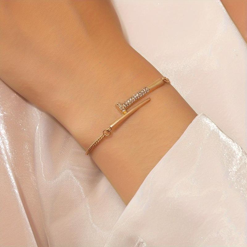 This stunning bracelet features dazzling rhinestone studs that add a touch of glamour to any outfit. It's adjustable to fit any wrist size and is perfect for parties and special occasions.