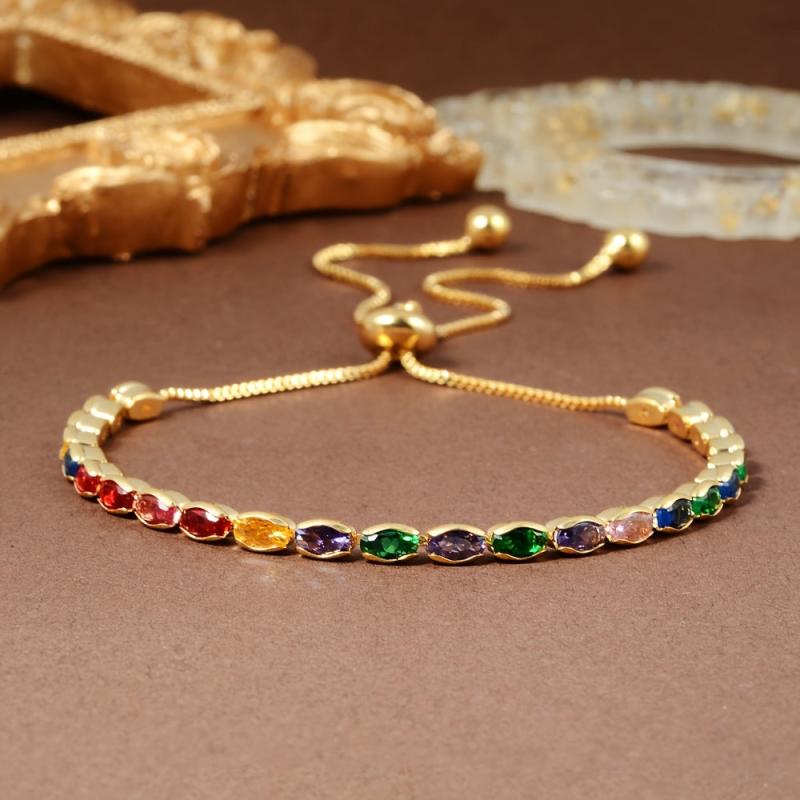 This women's bracelet features round cut synthetic zirconia stones in a hip hop style design. Perfect for everyday wear or to add a touch of glamour to your vacation outfits.