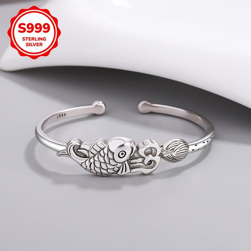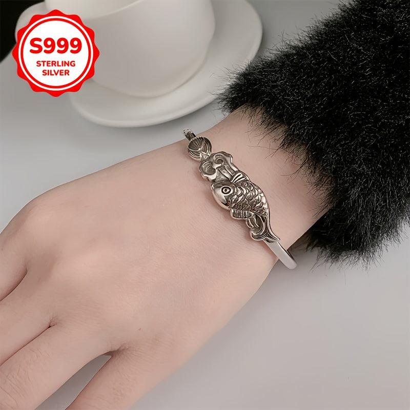This sterling silver bangle bracelet features a tribal-inspired design with intricate openwork patterns, making it a perfect gift for Mother's or Valentine's Day.