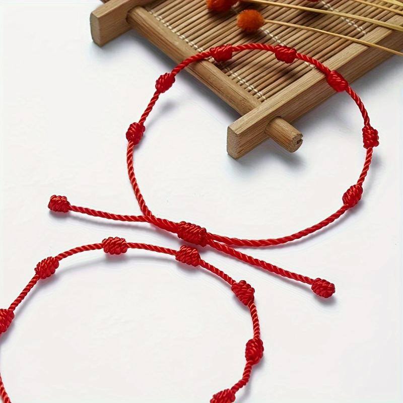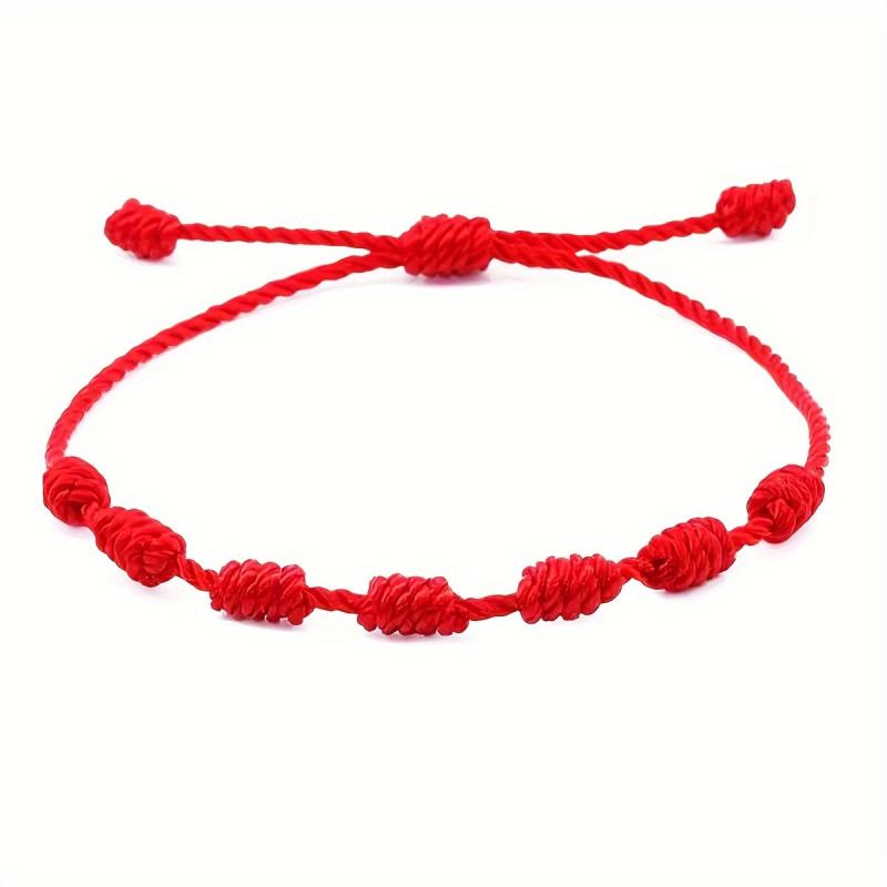 This red rope bracelet features 7 lucky knots, perfect for adding a touch of style and luck to any outfit. It is adjustable to fit any wrist size and makes a great gift for men.
