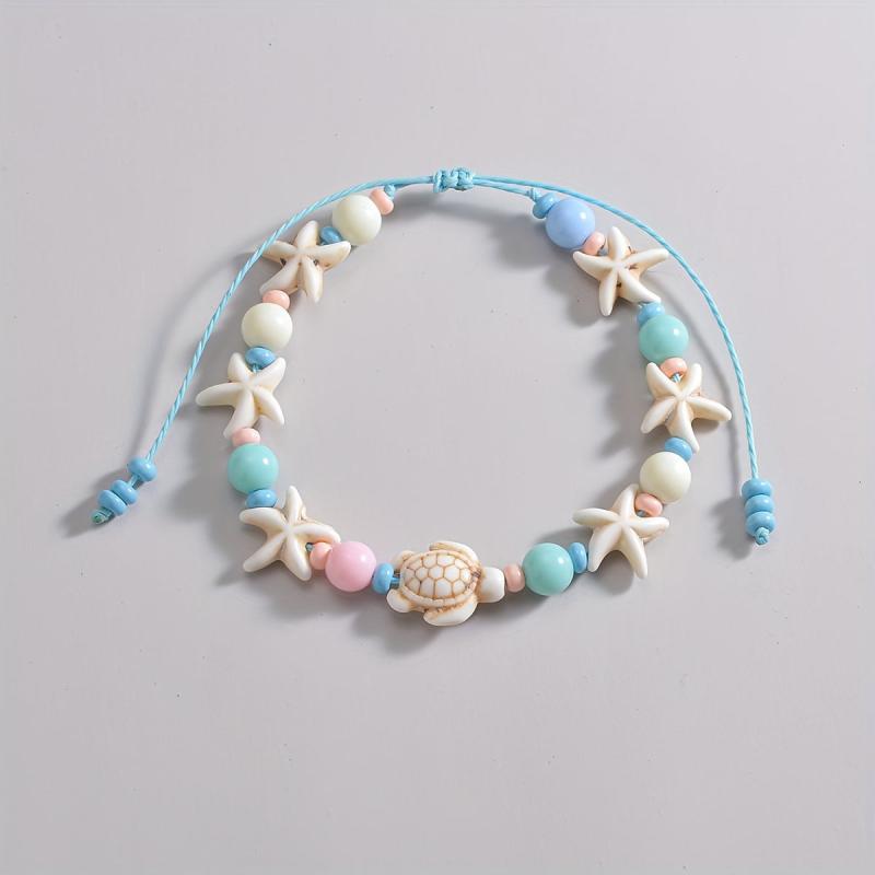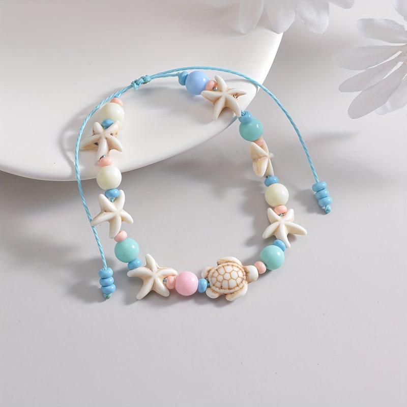 Elevate your casual attire with this lightweight, stretchy bracelet featuring an ocean theme. Made of pastel pink resin beads, it is perfect for women who love sea-inspired jewelry.