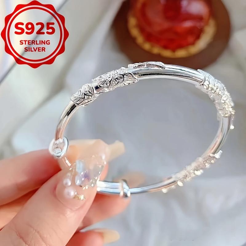 This adjustable S925 silver floral bracelet is a perfect accessory that combines minimalism with style. It makes a great gift for moms or girlfriends.