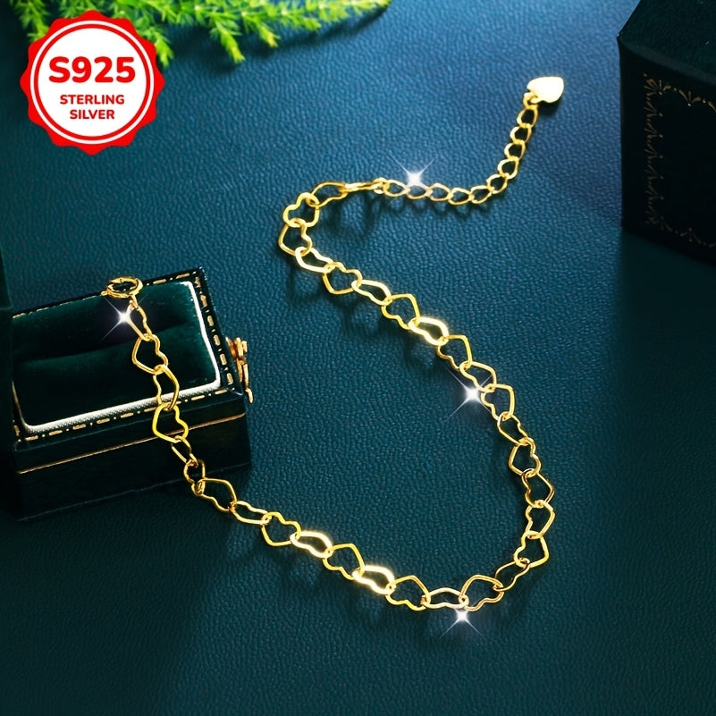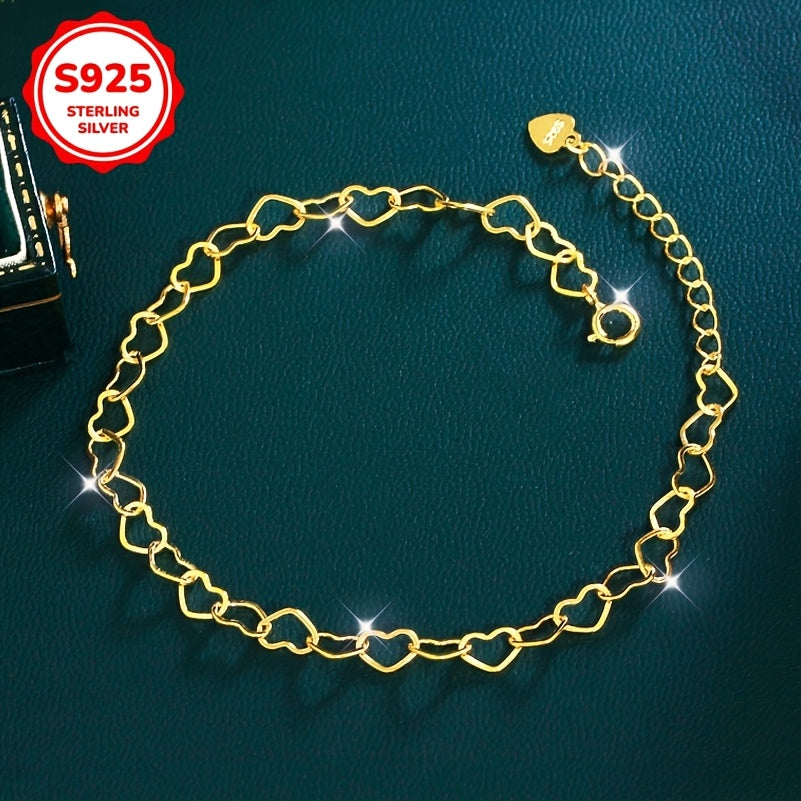 This bracelet is crafted from 925 sterling silver, featuring a sweet and romantic hollow heart design. The two-tone golden finish adds a touch of elegance to the piece.