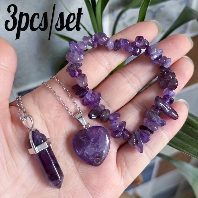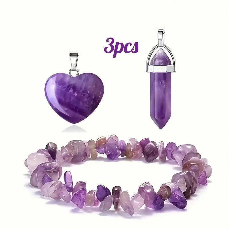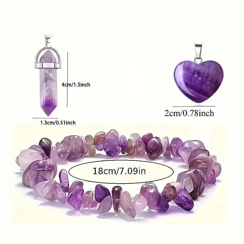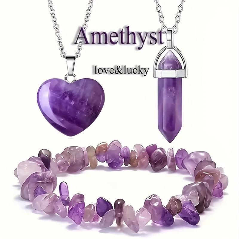 This 3-piece set features charming heart-shaped pendants made of natural amethyst and quartz. Create DIY jewelry for yourself or give it as a thoughtful gift to couples, parents, or friends.