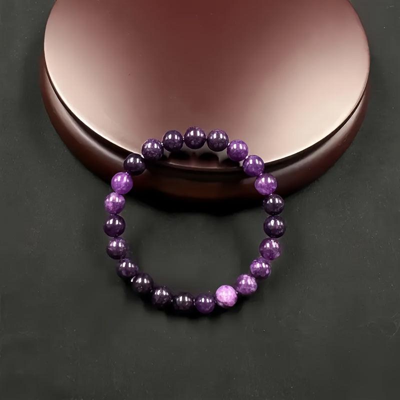 This amethyst bracelet is a perfect unisex accessory for daily wear. Made from natural amethyst stone, it symbolizes beauty and good luck, making it an ideal gift for friends.