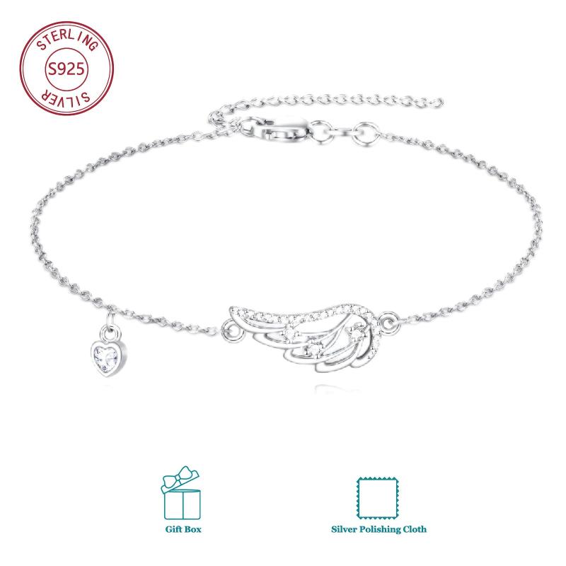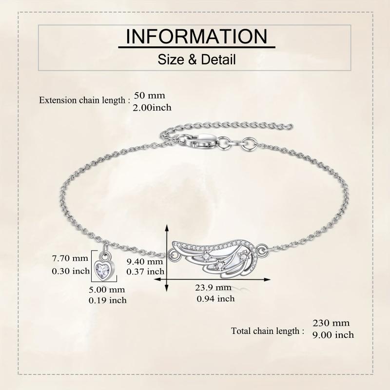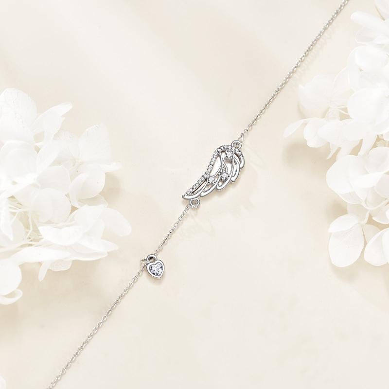 Elegant angel wing bracelet made of 925 sterling silver adorned with synthetic zirconia stones to add a heavenly touch to your jewelry collection.