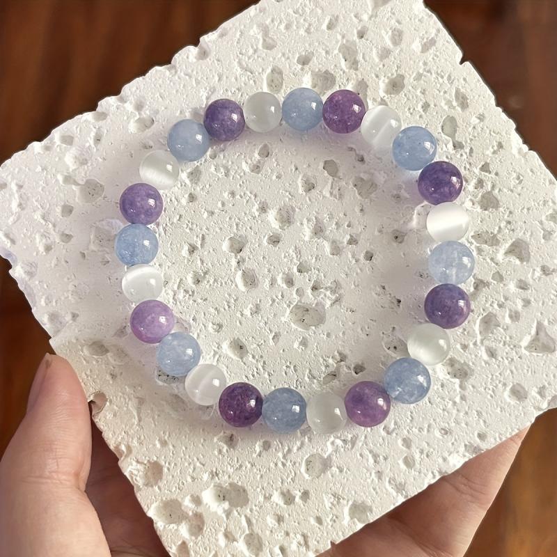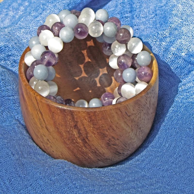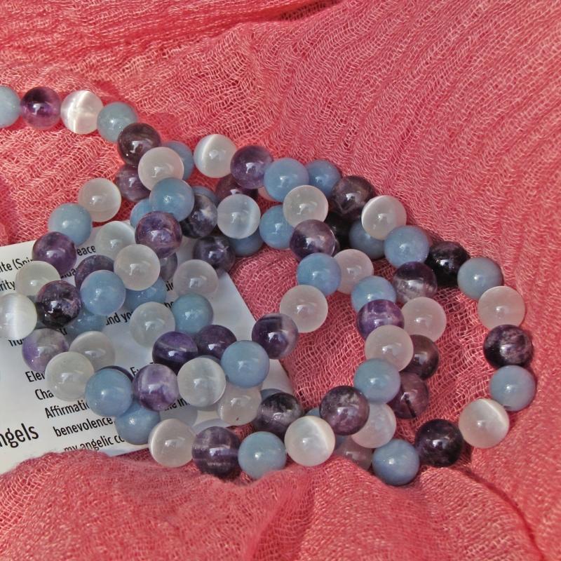 Angelite & Amethyst Beaded Bracelet Natural Stone Jewelry Boho Style Inner Peace