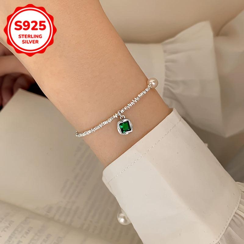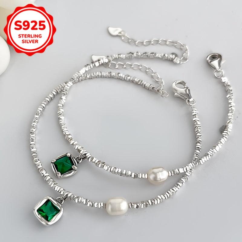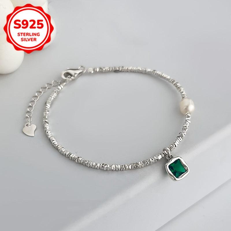 Add a touch of style with this S925 silver bracelet featuring irregular broken green stone beads. Ideal for everyday wear, this anti-allergy accessory makes a perfect BFF gift for any season.