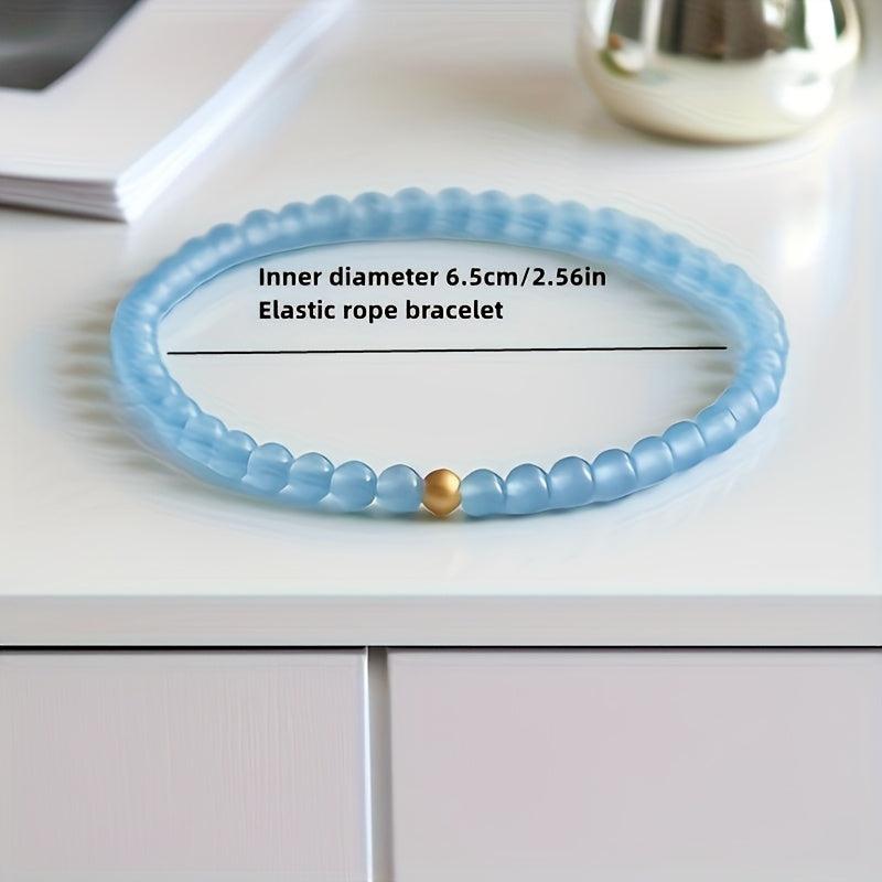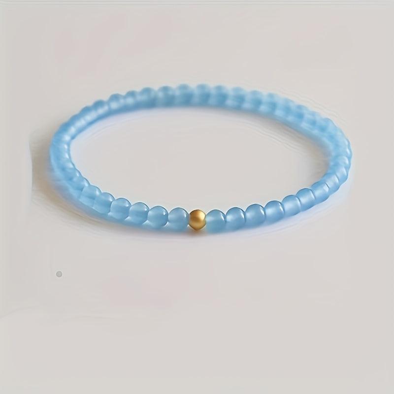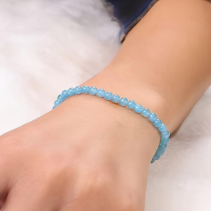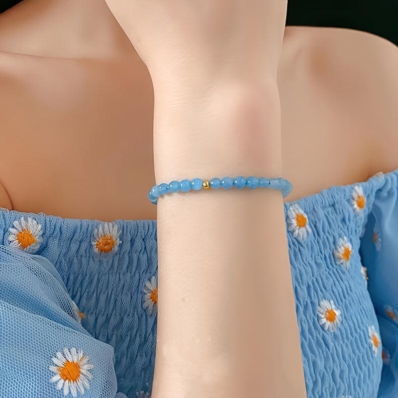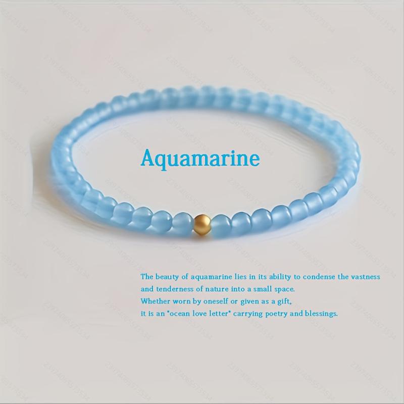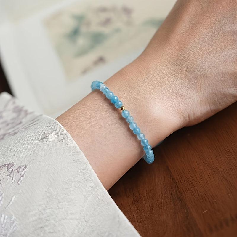Elevate your casual attire with this minimalist aquamarine and golden bead bracelet. A versatile gift for women year-round, this timeless accessory adds a touch of elegance to any look.