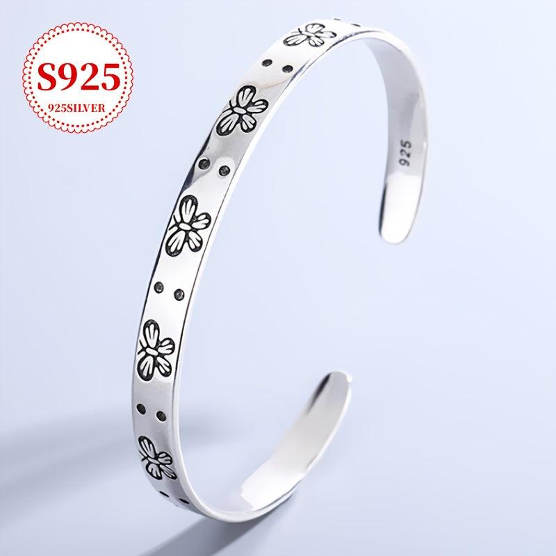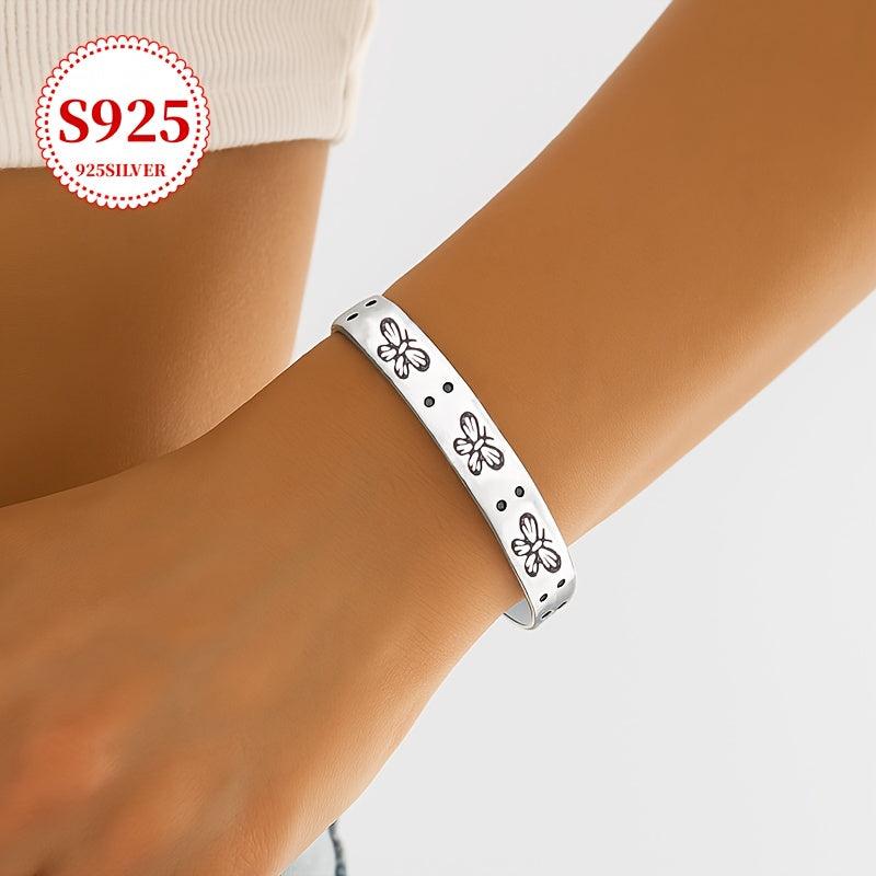 This open cuff bracelet features a retro design with a beautiful butterfly motif, perfect for those with allergies.