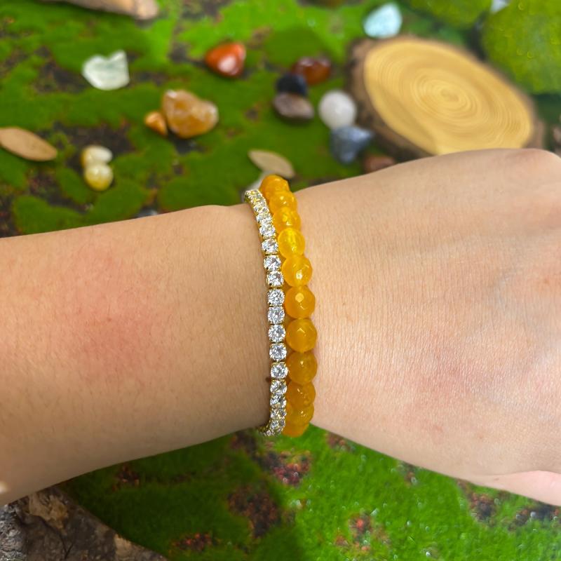 This bracelet features sunstone and citrine natural stones that promote abundance and success. Ideal as a Christmas gift for men and women.