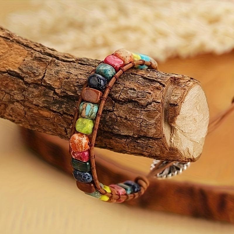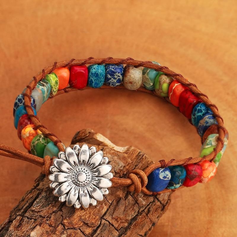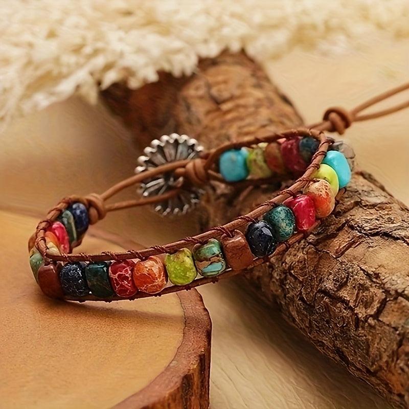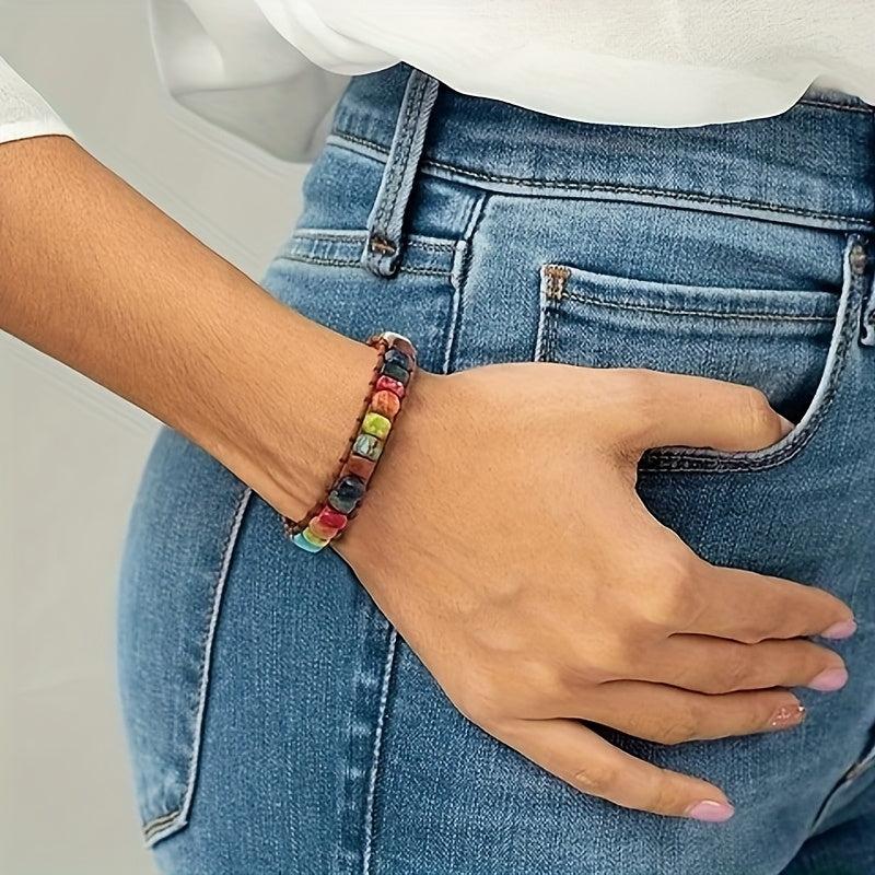 Elevate your style with this natural stone bracelet featuring 7 chakras beads. Perfect daily accessory for a Bohemian look.
