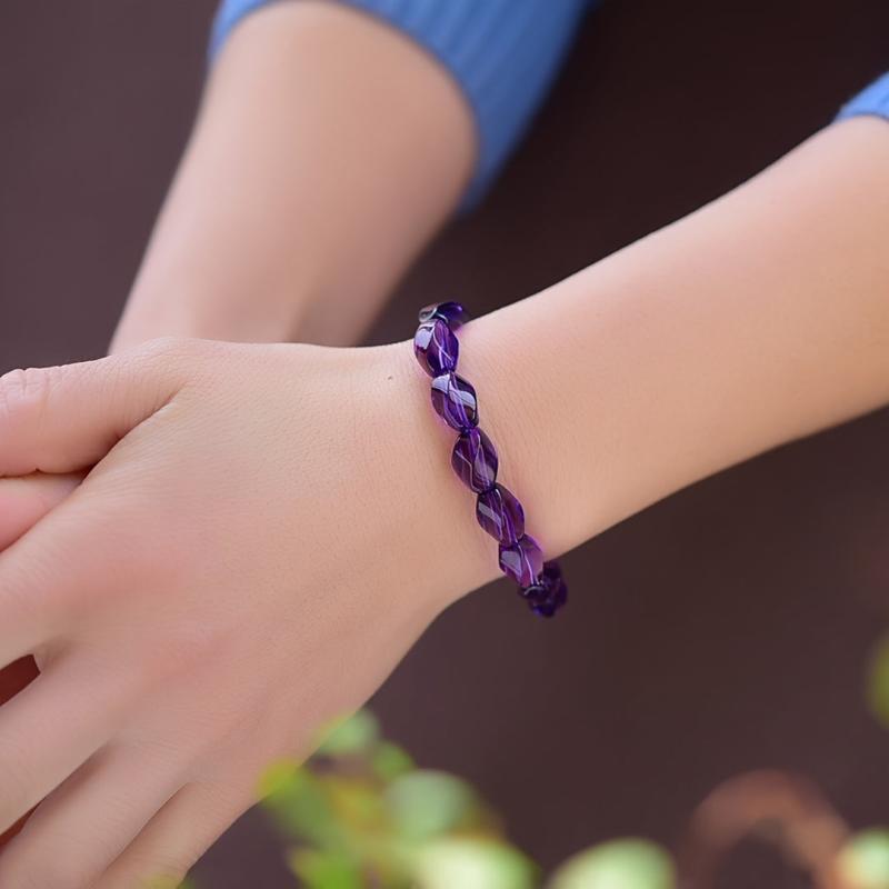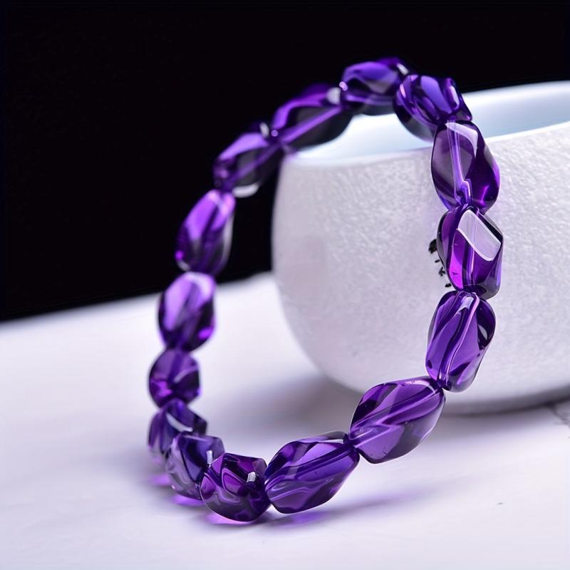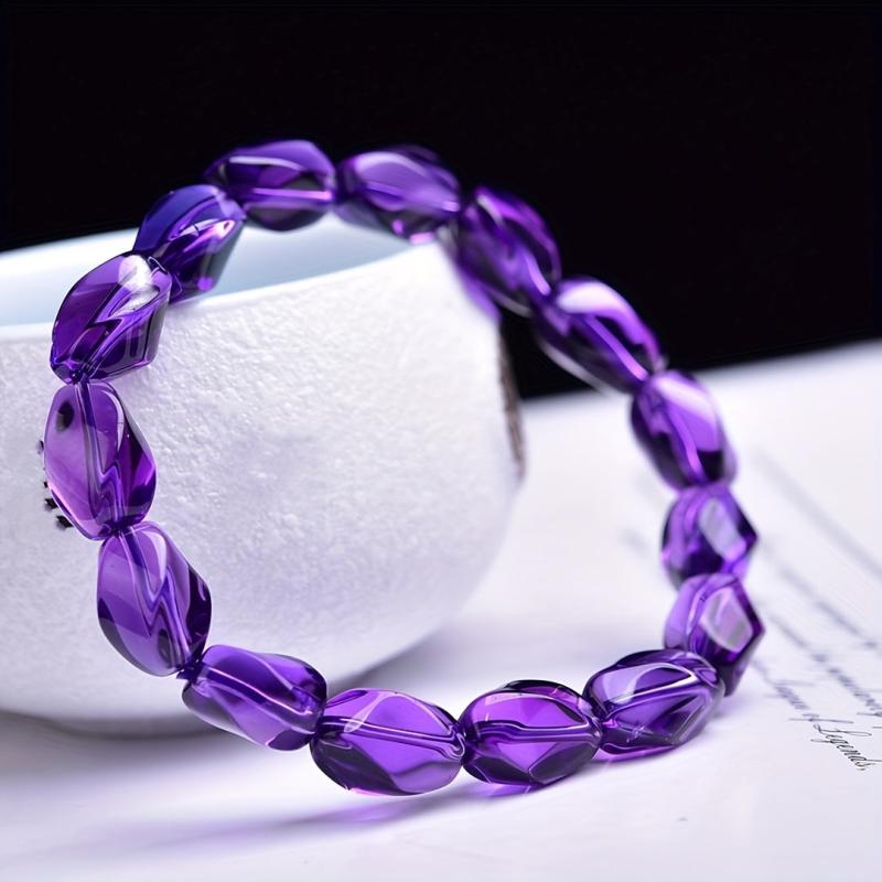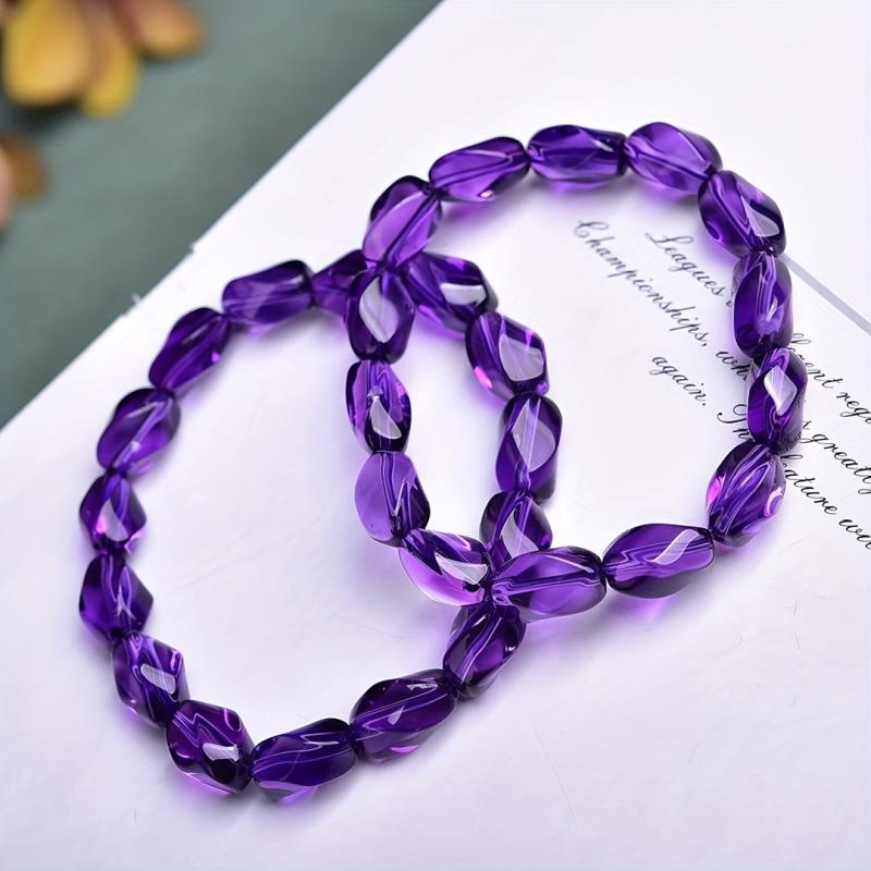 Elevate your style with this bohemian natural amethyst crystal bracelet. The twisted S shaped design features stunning purple crystals, perfect for women's casual attire and makes a great gift year-round.