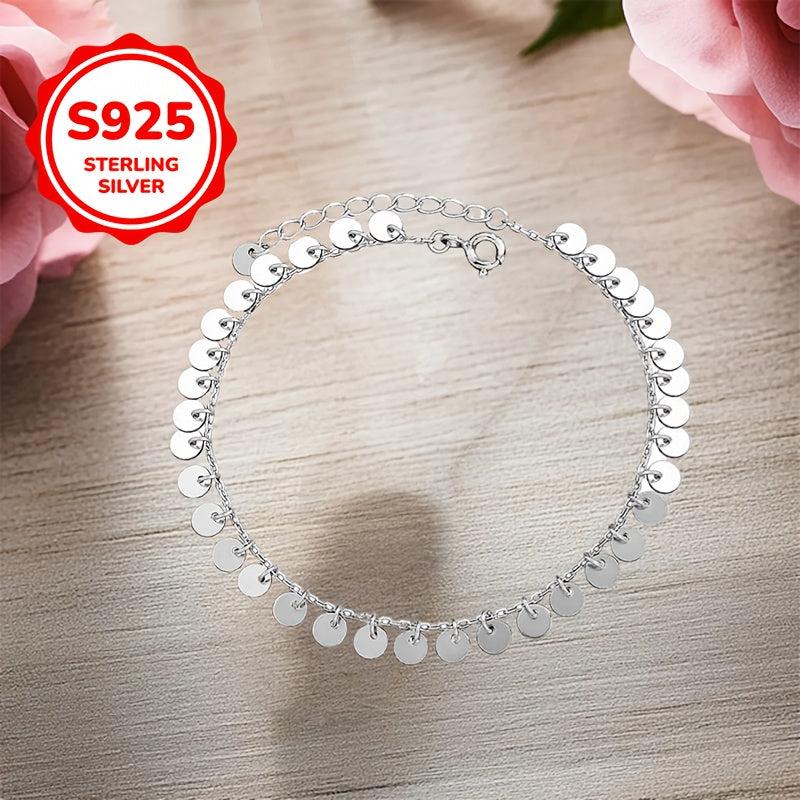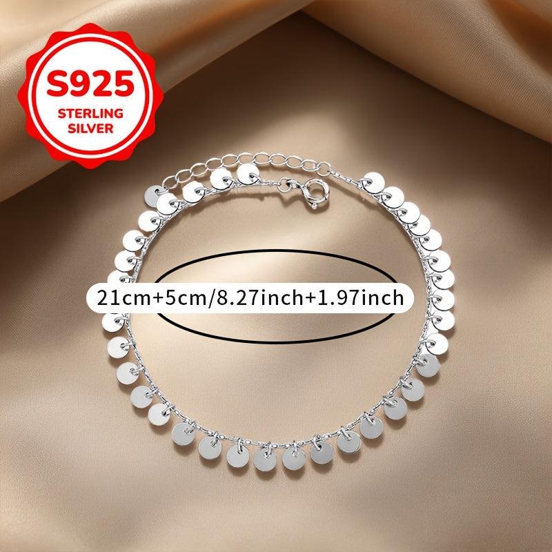 Elevate your beach look with this sexy and stylish ankle bracelet featuring stacked round discs. Made of high-quality S925 silver, this bohemian charm is perfect for a holiday or music fest.