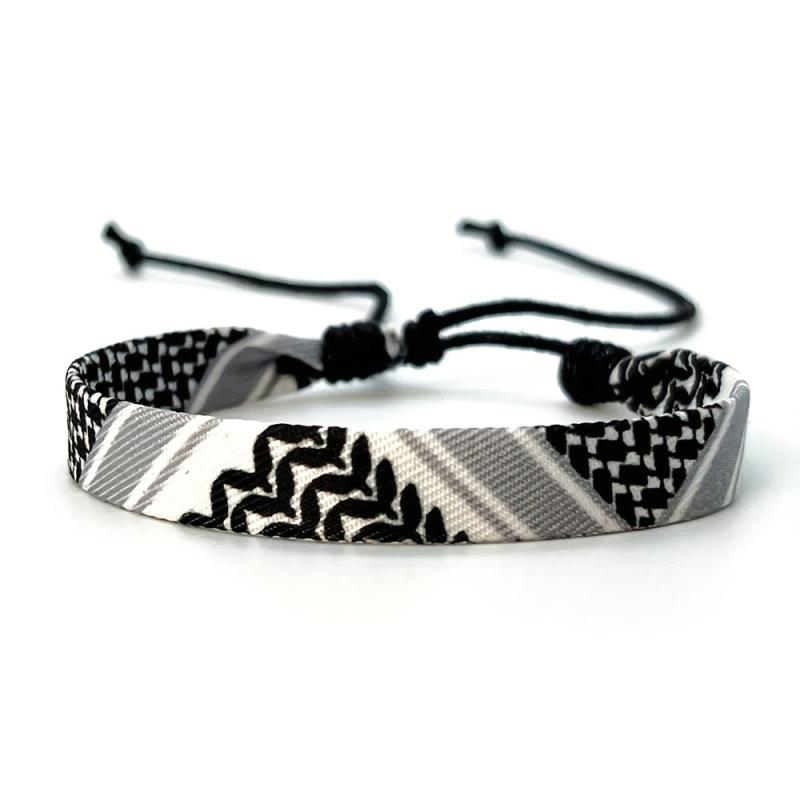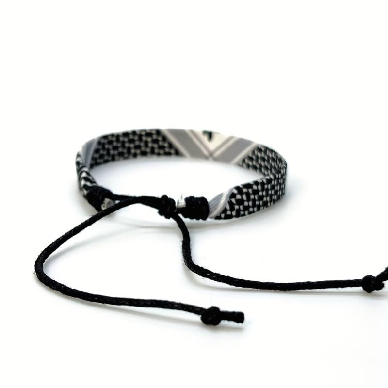 This set includes 3 bohemian braided fabric bracelets featuring an ethnic style and vintage look. Made of high-quality polyester, with an adjustable cord for easy wearing. Perfect for daily wear or parties.
