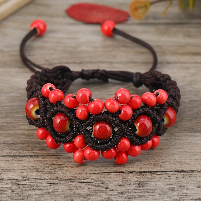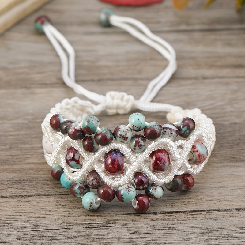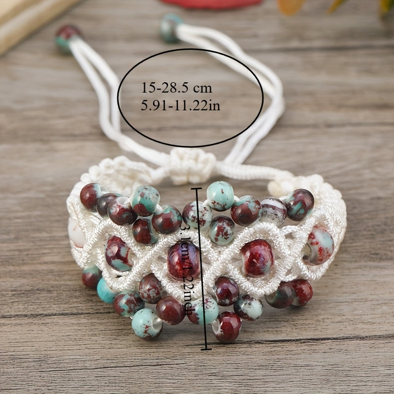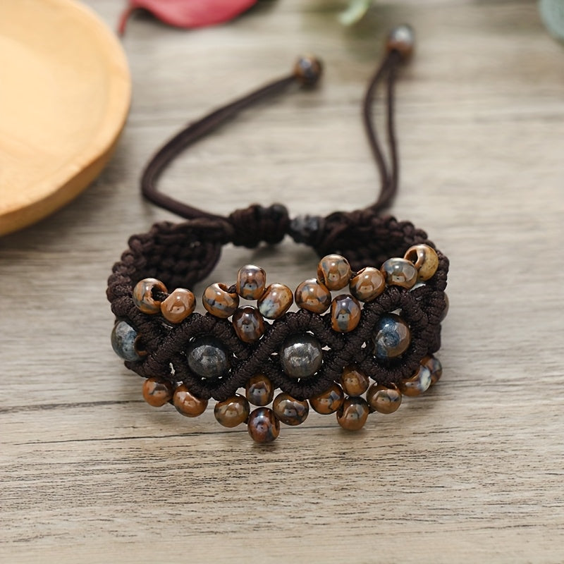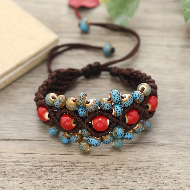 Embrace the bohemian style with this adjustable bracelet featuring vintage ceramic beads in colorful earthy tones. Perfect for both women and men, ideal for holidays and special occasions.