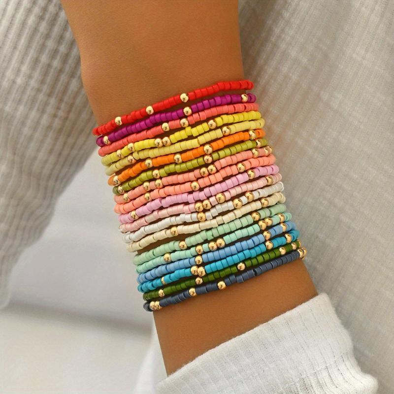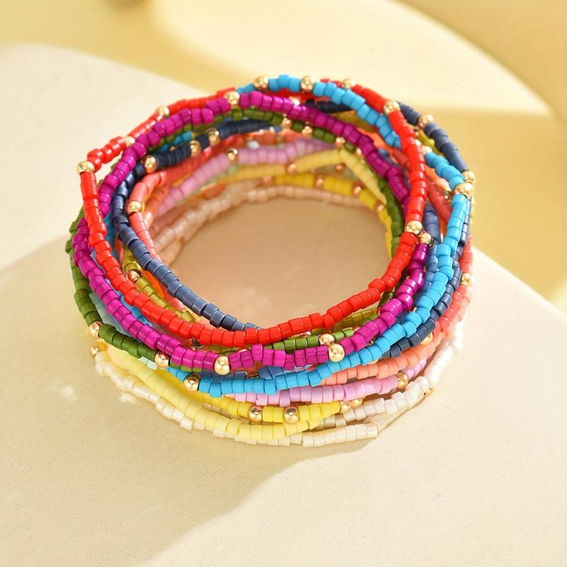 Elevate your beach vacation or casual attire with this bohemian-inspired colorful beaded bracelet. It adds a fun pop of color to your outfit and completes the perfect summer look.