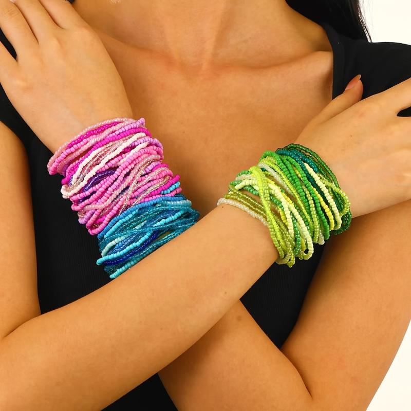 Add a touch of bohemian style with this colorful rice beads layer bracelet that is fashionable and versatile for various outfits.