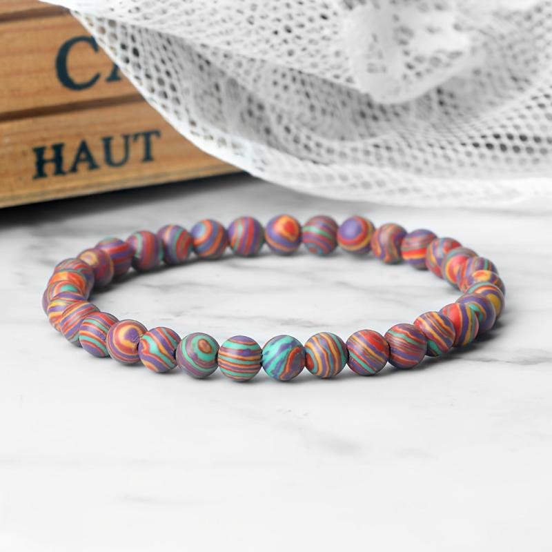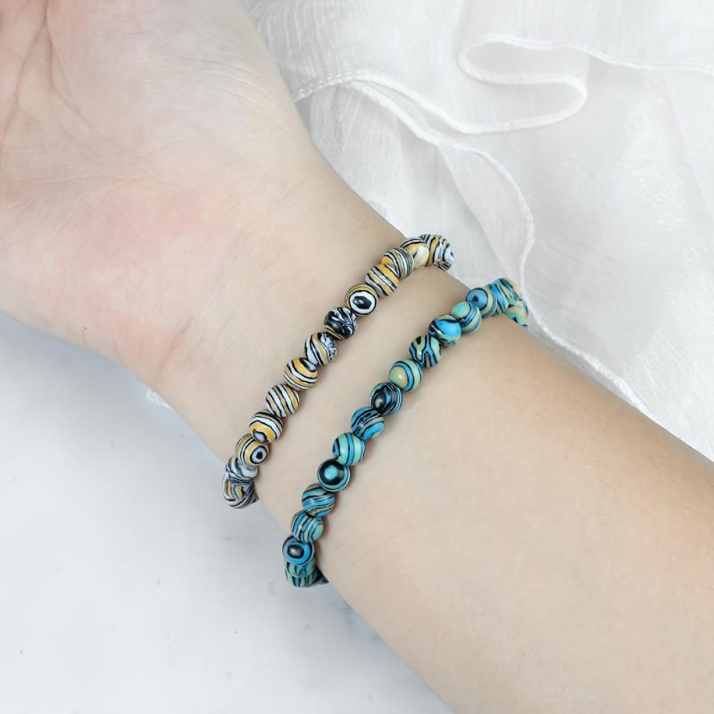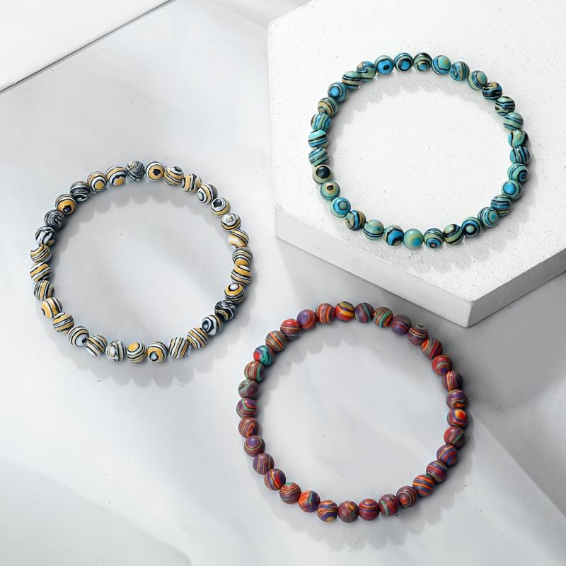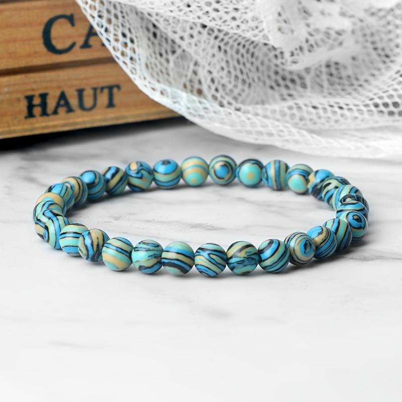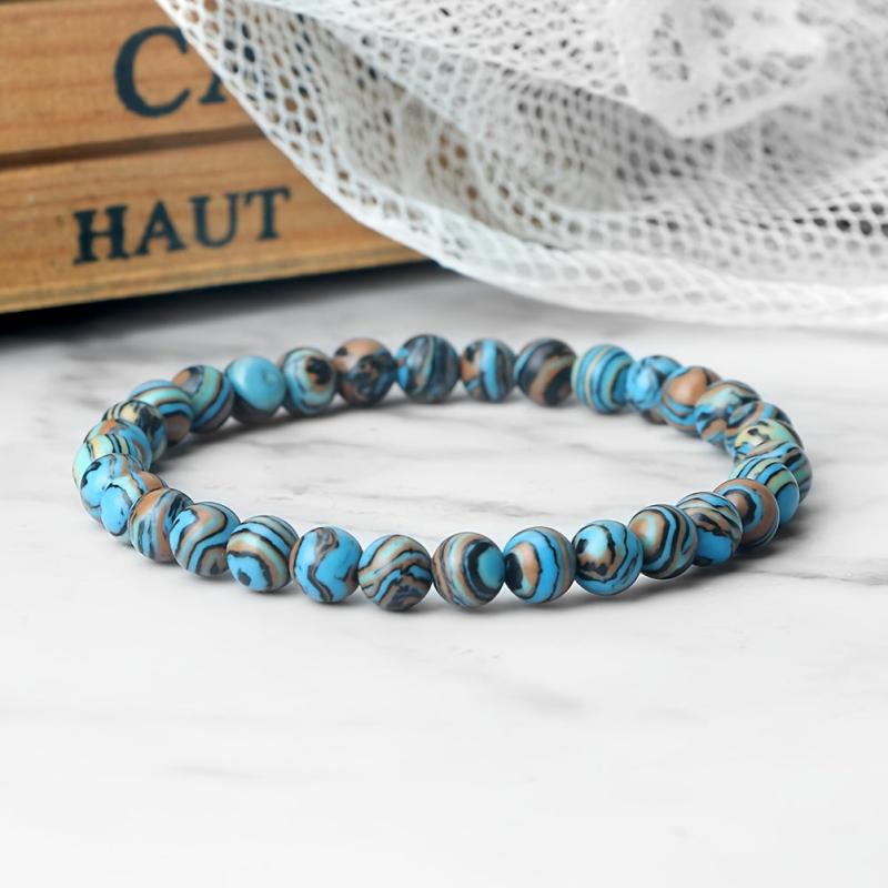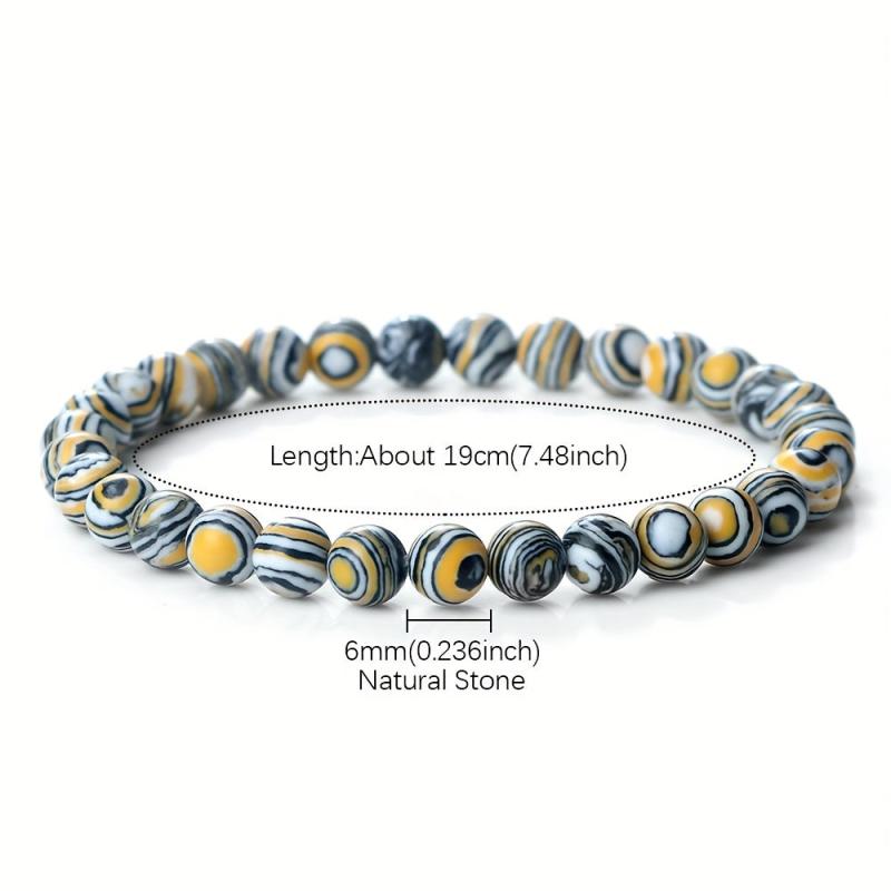 Add a touch of bohemian ethnic style with this 6mm peacock stone bracelet featuring mixed patterns and round beads. Perfect for low-key daily wear and vacation accessorizing.