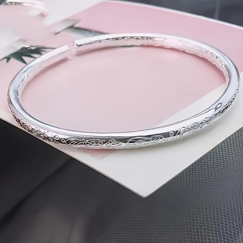 Elevate your casual look with this intricate copper bangle bracelet featuring floral design. Ideal for beach vacations and birthdays.