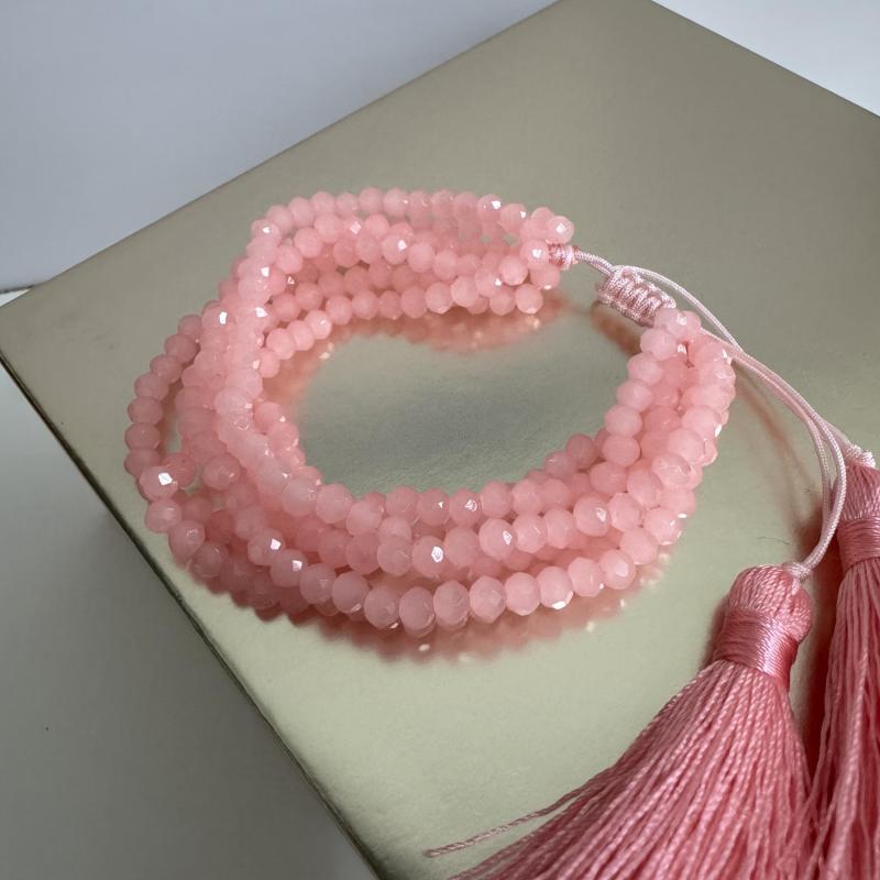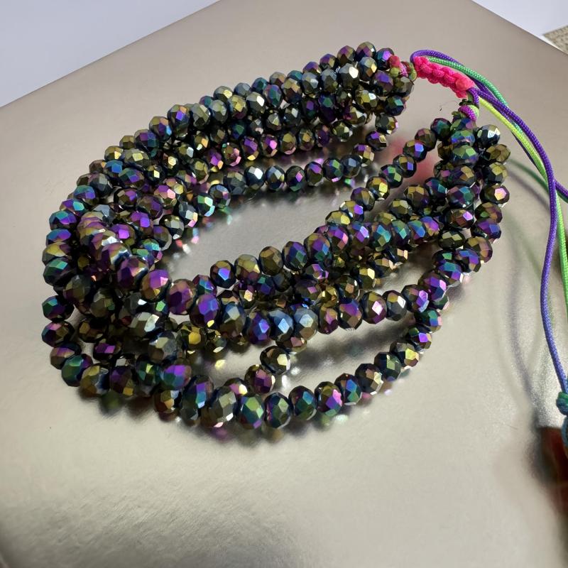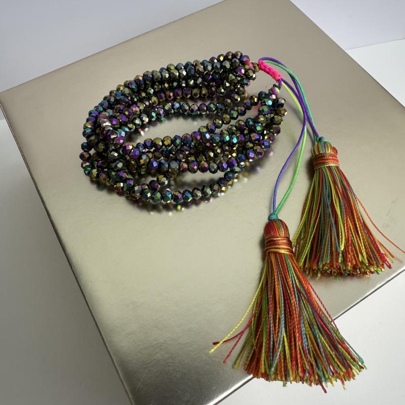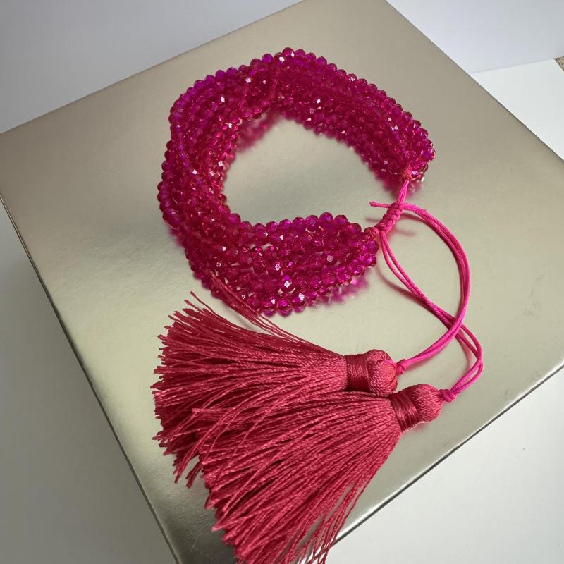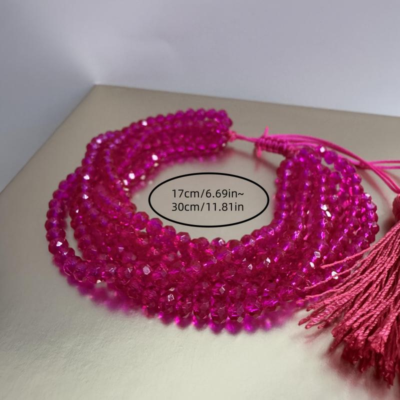 Add a touch of boho flair to your summer outfits with this layered bracelet. Features lightweight and durable design with multicolor iridescent beads and pink cord accents.