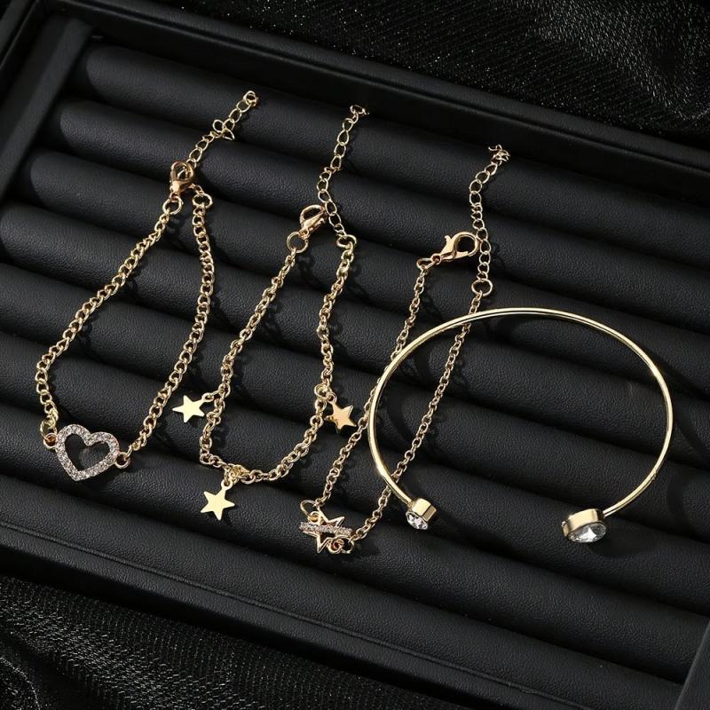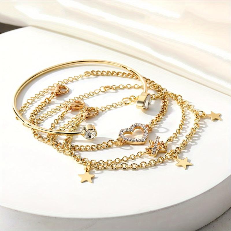 Elevate your style with this 4-piece bracelet set featuring zinc alloy bangles with rhinestone accents and a trendy green tassel. Perfect for dates and parties during the holiday season.