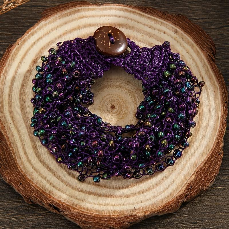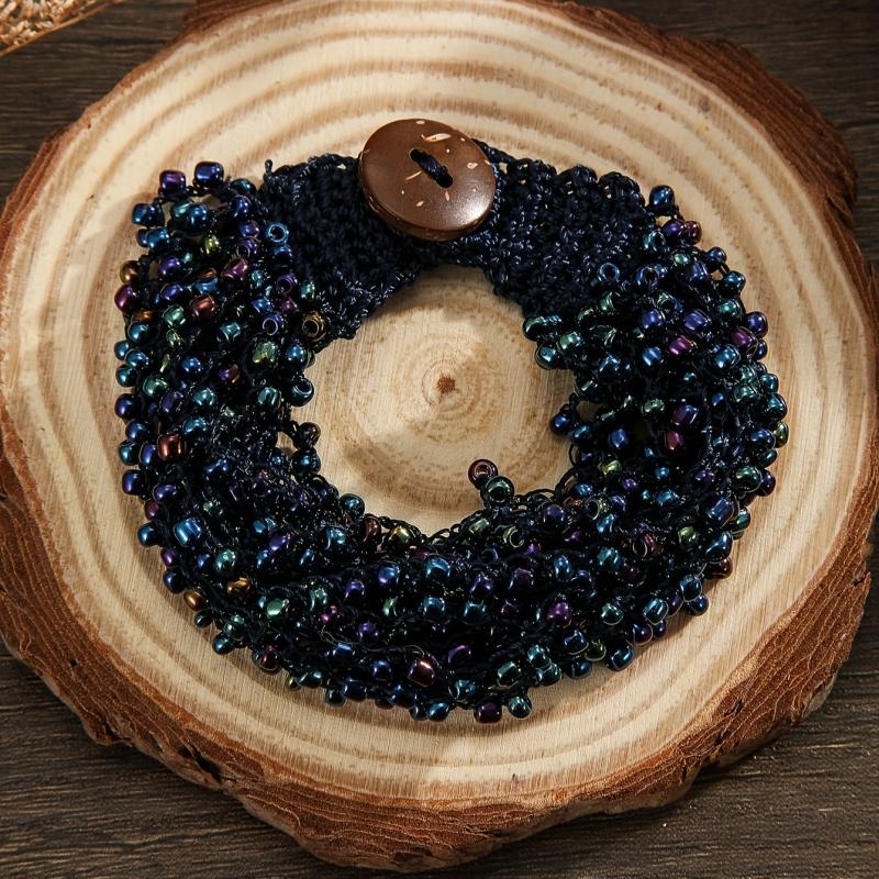 Add a touch of bohemian style to your outfits with this knitted bead bracelet. Perfect for casual attire or parties, this minimalist piece is a great gift for women.