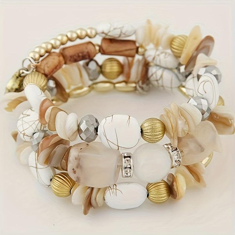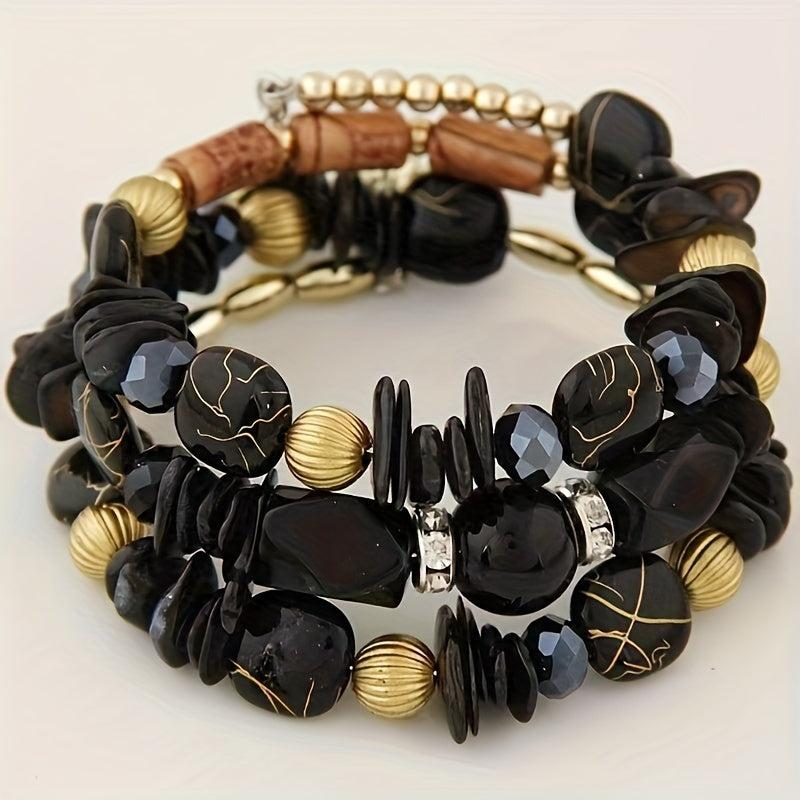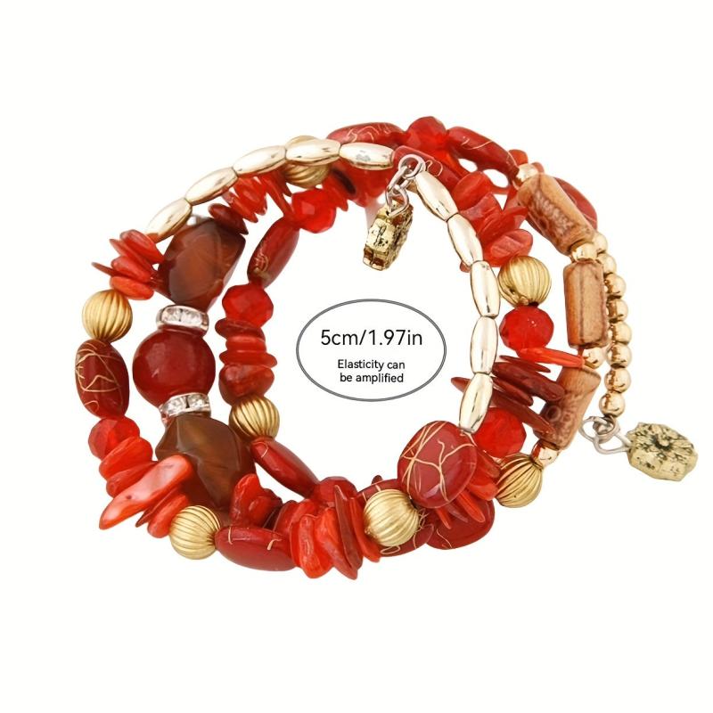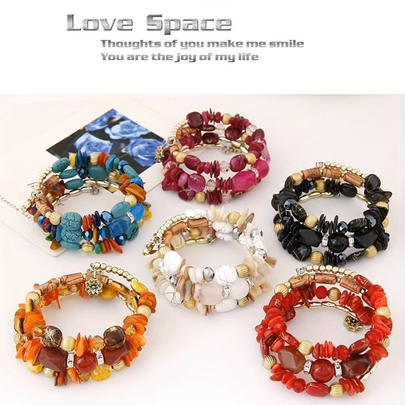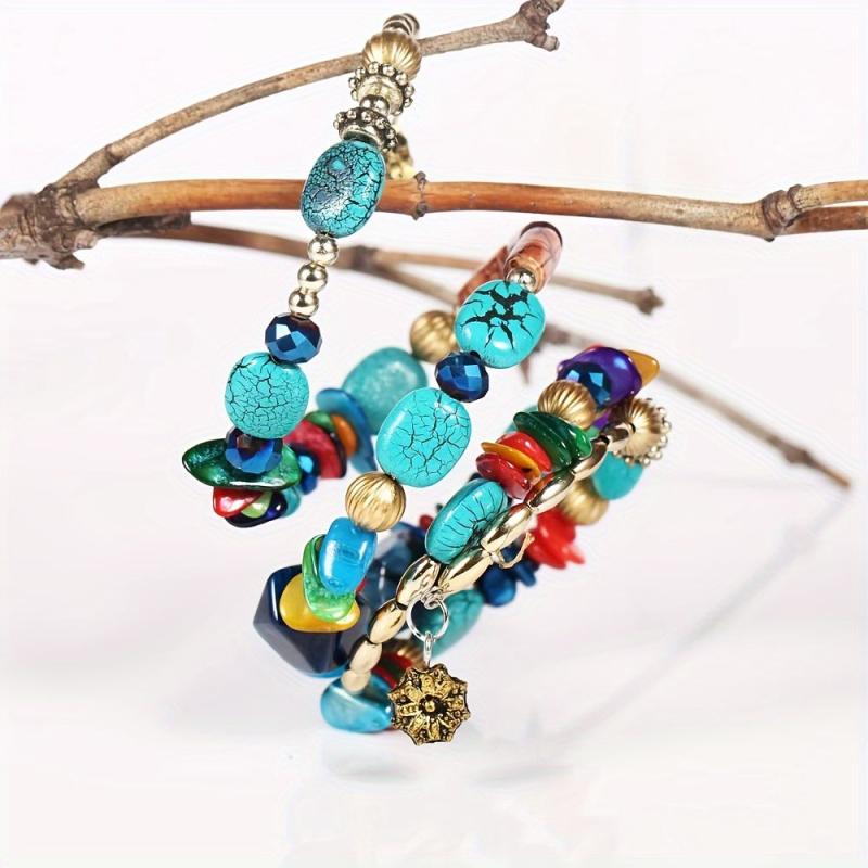 Add a touch of bohemian charm with this retro bracelet featuring colorful natural turquoise stones. This elastic wrapped bracelet is perfect for adding a pop of color to your outfit.