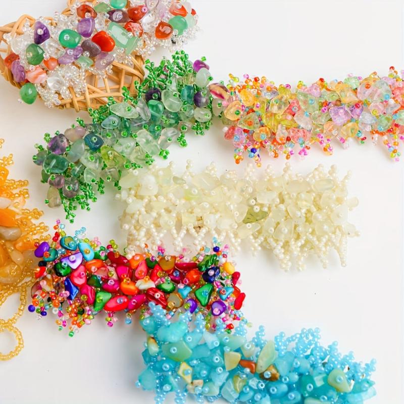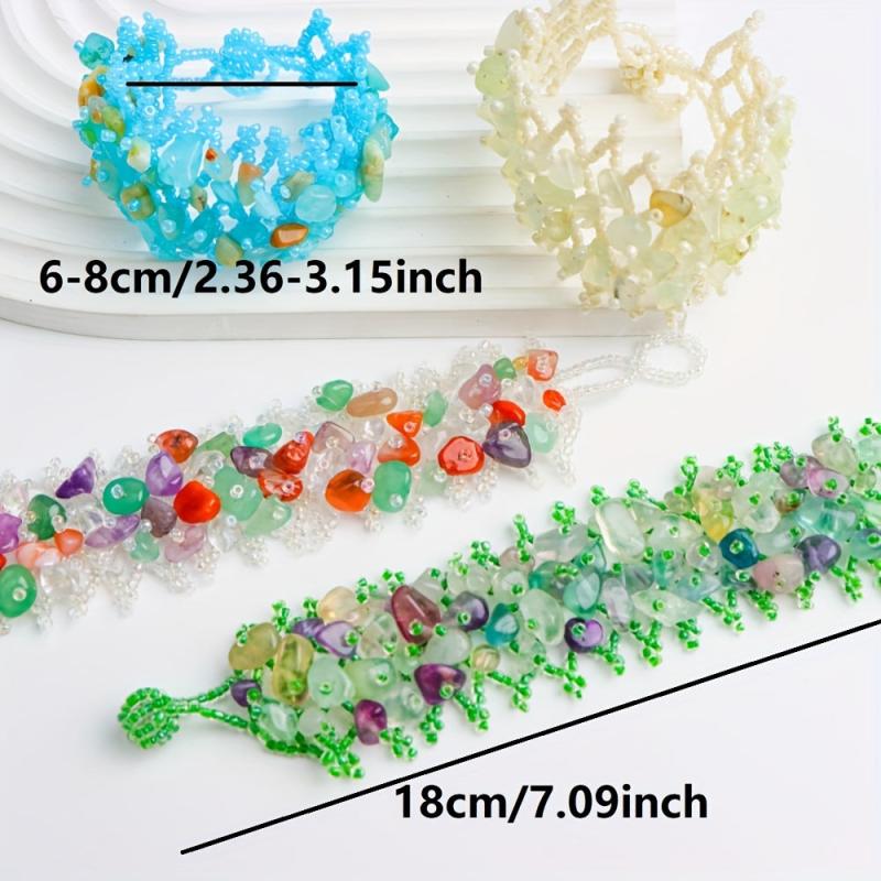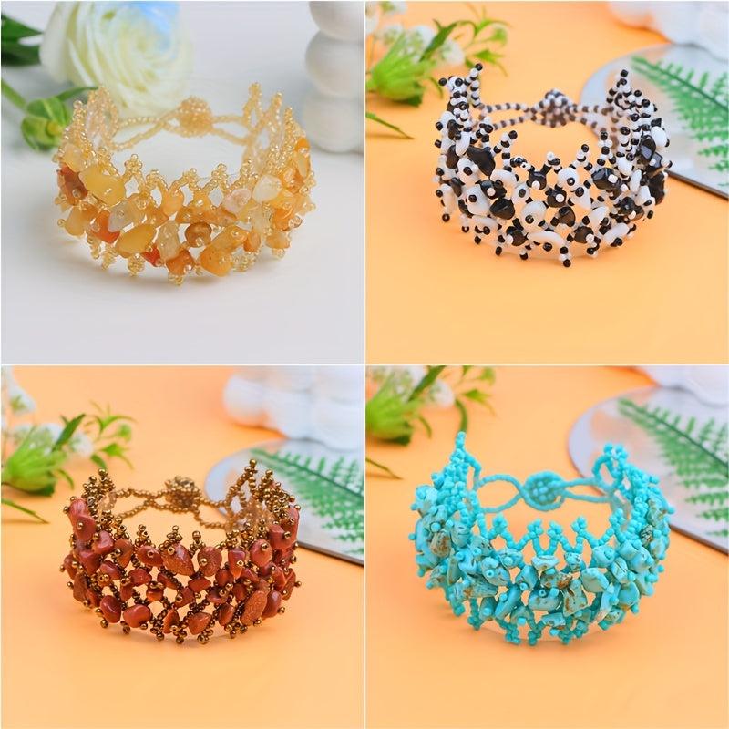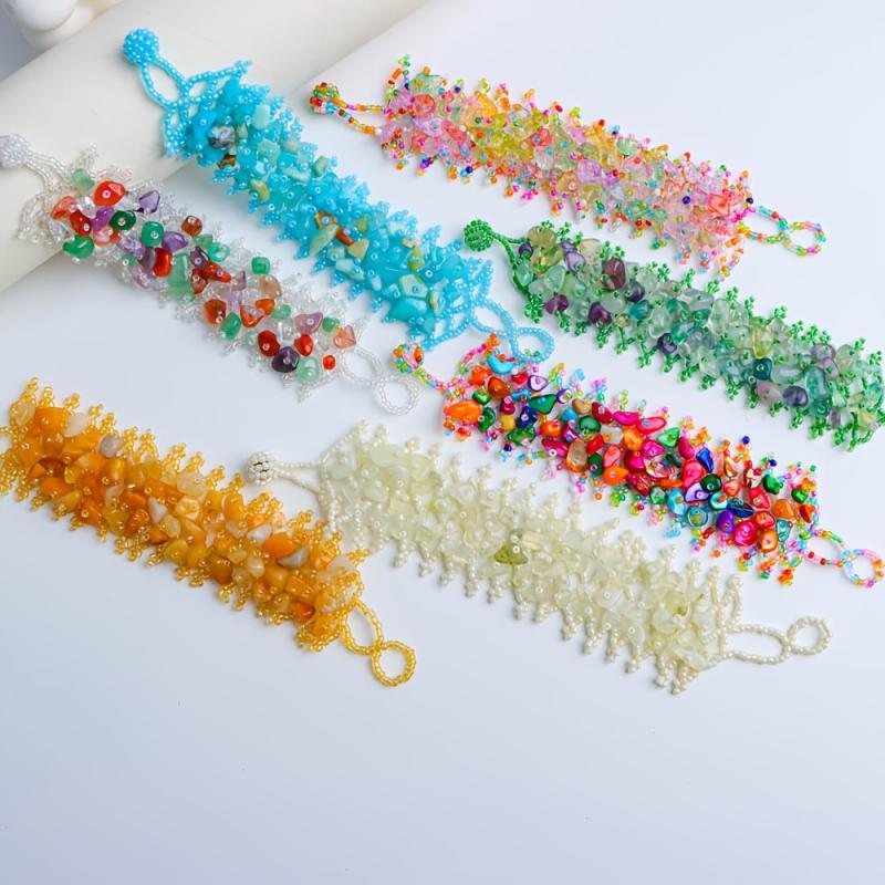 Add a touch of bohemian flair to your look with these natural stone bracelets. The colorful gravel beads and adjustable design make them perfect for vacations or parties.